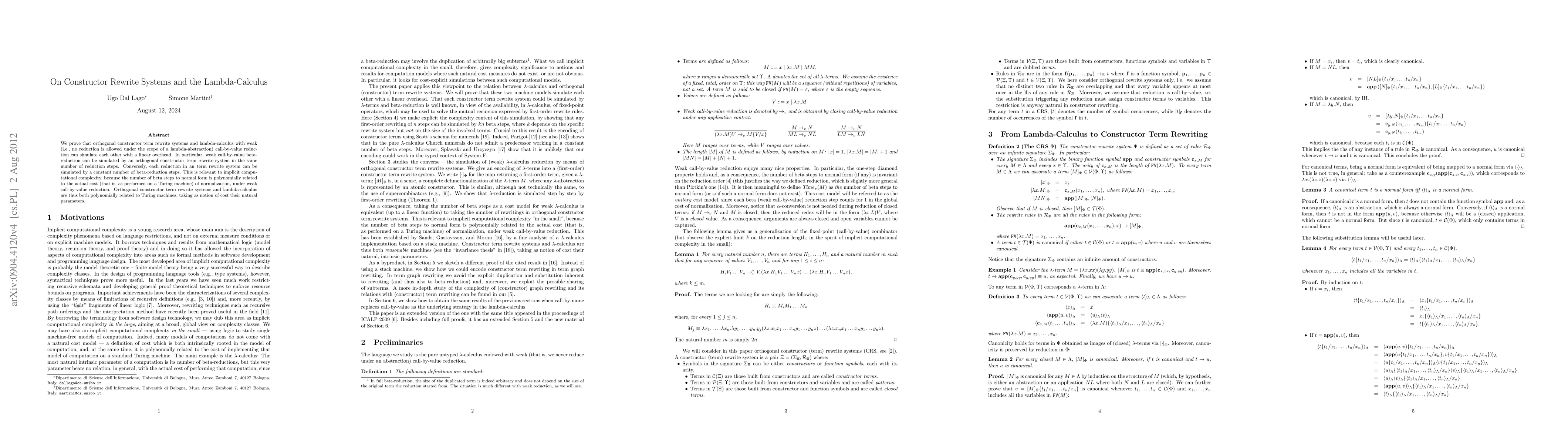 Researchers prove that orthogonal constructor term rewrite systems and lambda-calculus with weak call-by-value reduction can simulate each other with linear overhead, both being polynomially related to Turing machines.
