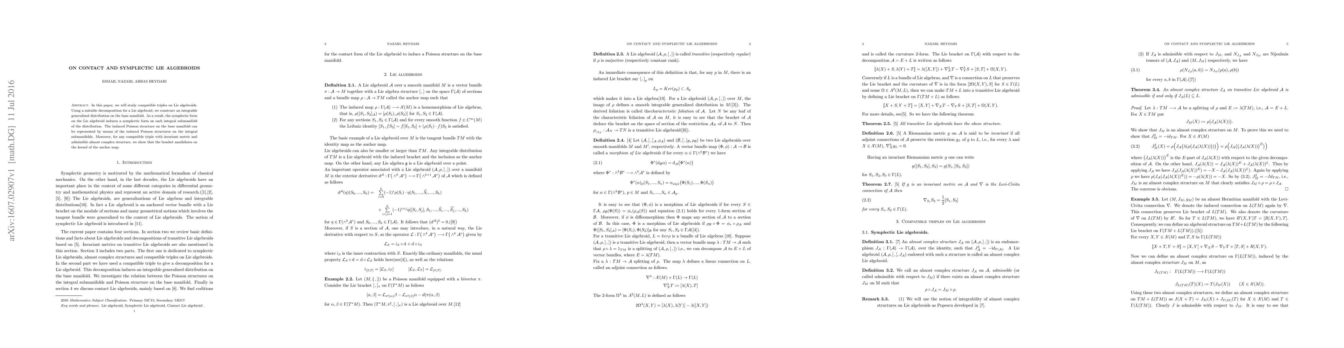 This paper investigates compatible triples on Lie algebroids, constructing an integrable distribution from a suitable decomposition, which induces a symplectic form on integral submanifolds. It demonstrates that the bracket annihilates on the kernel of the anchor map for compatible triples with invariant metric and admissible almost complex structure.