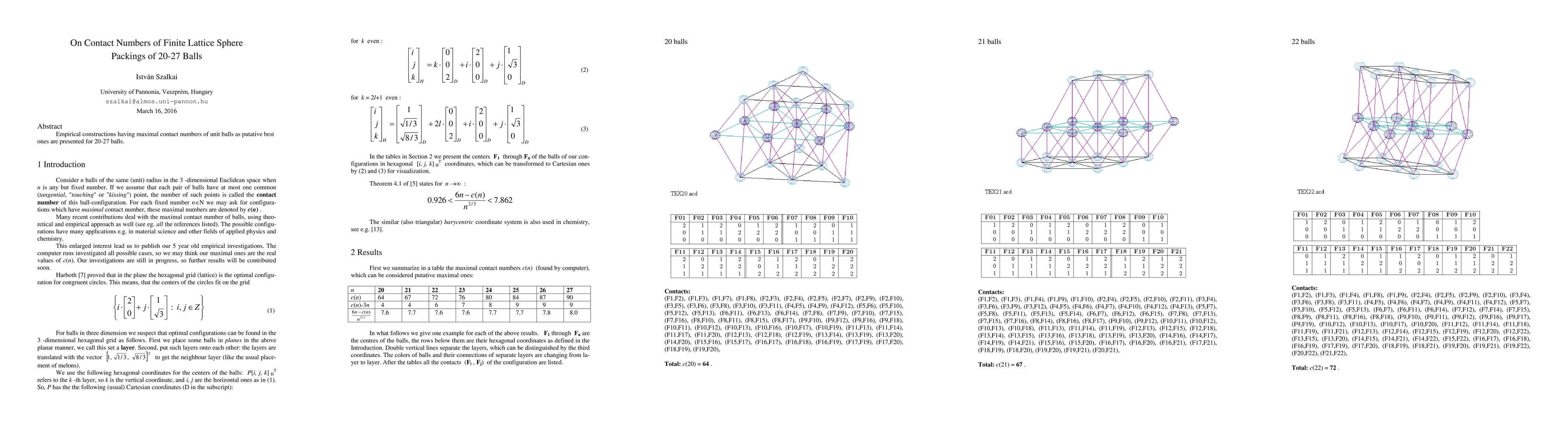 Researchers found empirical constructions of finite lattice sphere packings with maximal contact numbers for 20-27 balls, providing a theoretical basis for optimal packing arrangements.