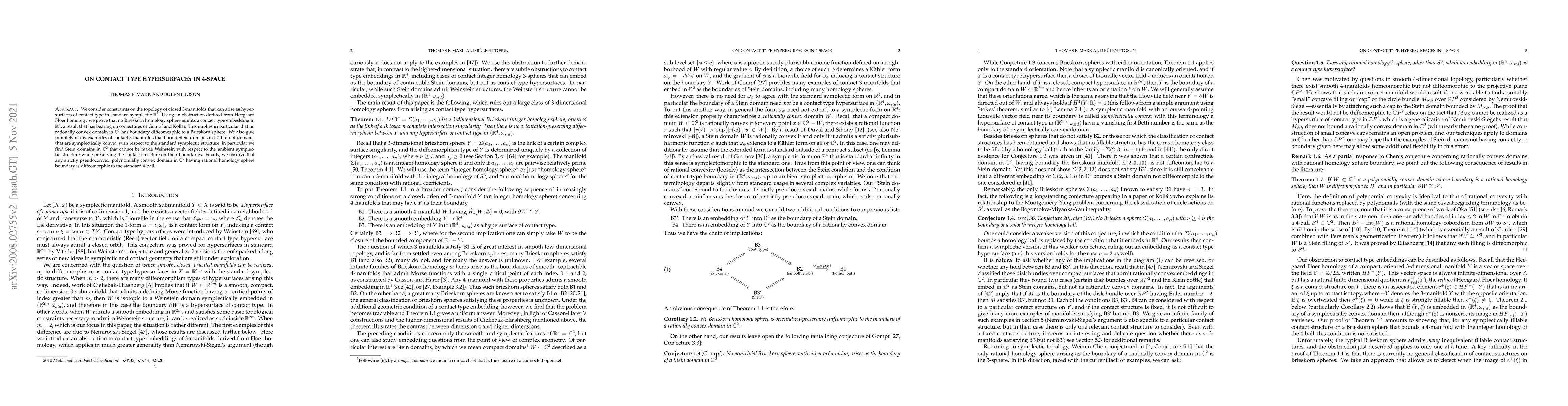 This paper proves that no Brieskorn homology sphere can be embedded as a contact type hypersurface in $R^4$, using Heegaard Floer homology, which impacts conjectures by Gompf and Kollár. It also presents examples of contact 3-manifolds that bound Stein but not symplectically convex domains in $C^2$.