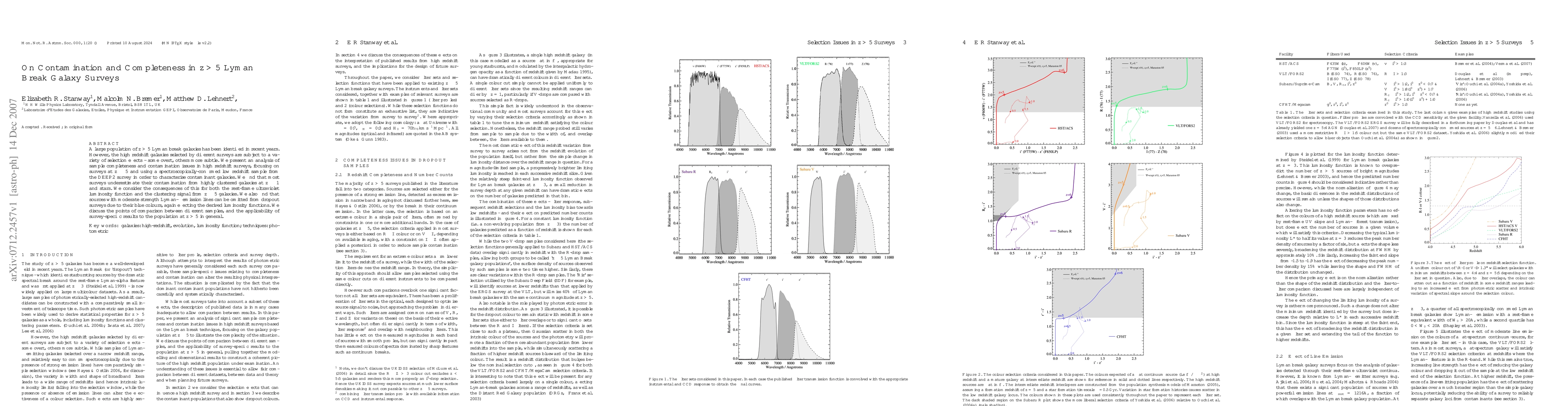 A large population of z>5 Lyman break galaxies has been identified in recent years. However, the high redshift galaxies selected by different surveys are subject to a variety of selection effects - some overt, others more subtle. We present an analysis of sample completeness and contamination issues in high redshift surveys, focusing on surveys at z=5 and using a spectroscopically-confirmed low redshift sample from the DEEP2 survey in order to characterise contaminant galaxies. We find that most surveys underestimate their contamination from highly clustered galaxies at z=1 and stars. We consider the consequences of this for both the rest-frame ultraviolet luminosity function and the clustering signal from z=5 galaxies. We also find that sources with moderate strength Lyman-alpha emission lines can be omitted from dropout surveys due to their blue colours, again effecting the derived luminosity functions. We discuss the points of comparison between different samples, and the applicability of survey-specific results to the population at z>5 in general.