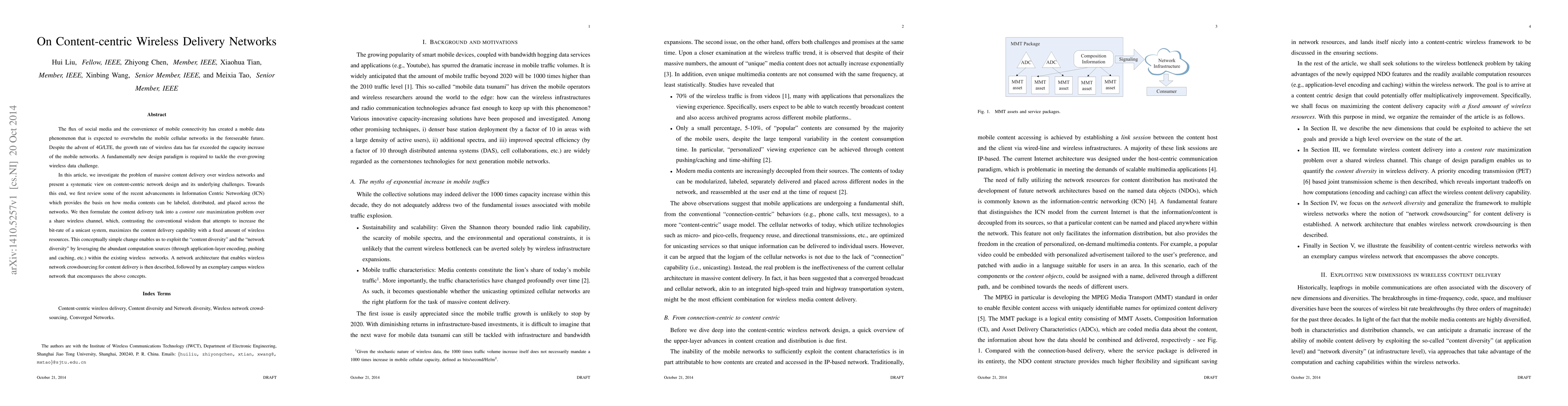 This paper explores the challenges of massive content delivery in wireless networks and proposes a new content-centric network design paradigm. It leverages Information Centric Networking to maximize content delivery efficiency using existing wireless resources, introducing a network architecture that utilizes wireless network crowdsourcing.