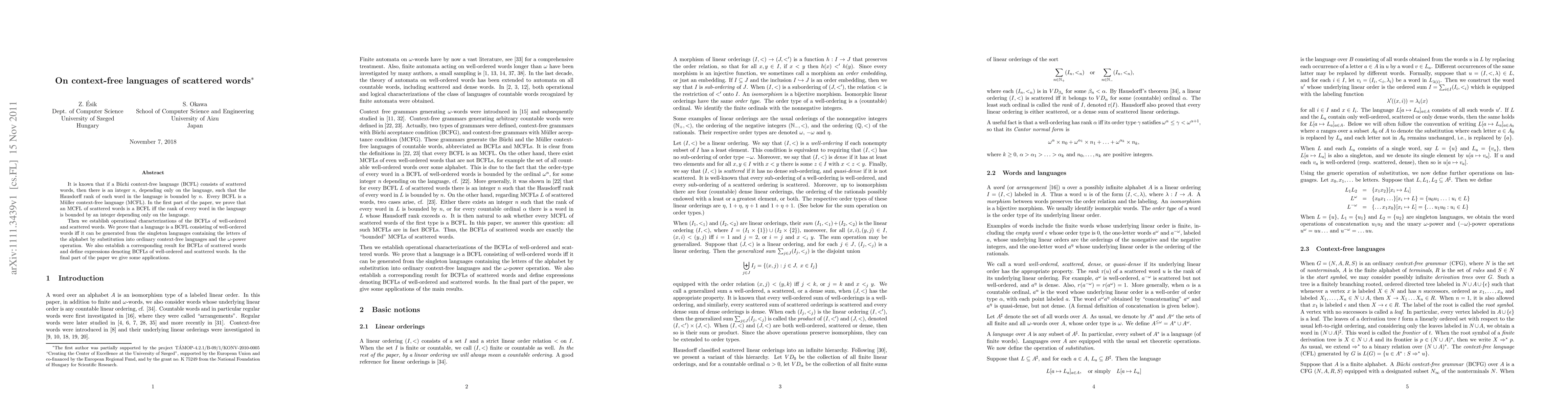 This paper investigates context-free languages (CFL) of scattered words, proving that a Müller CFL of scattered words is a Büchi CFL if the ranks of its words are bounded. It further characterizes Büchi CFLs of well-ordered and scattered words using substitution and operations, and concludes with applications of these results.