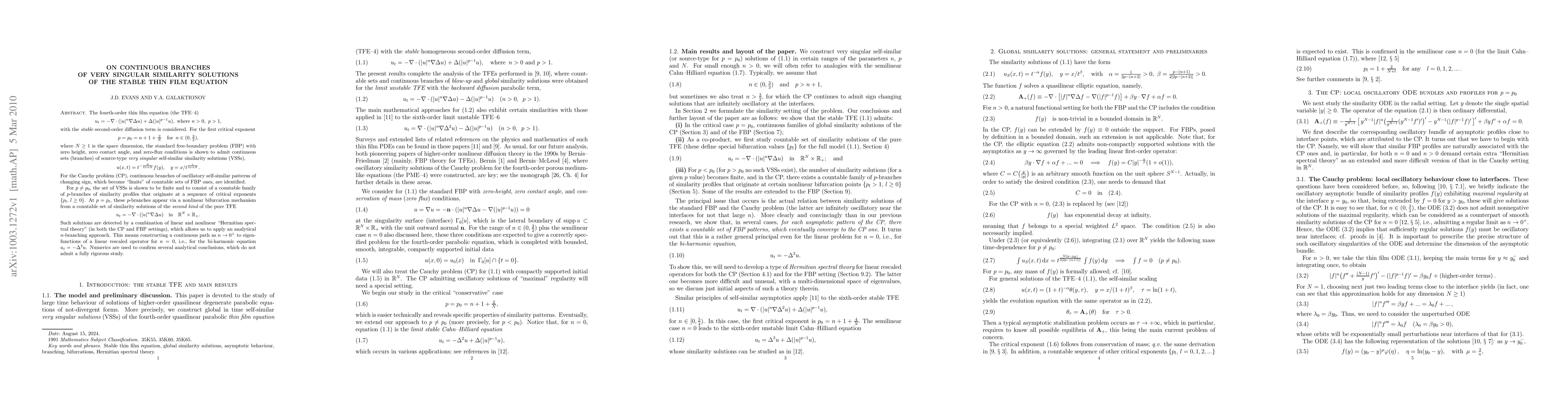 Summary: This paper investigates continuous branches of similarity solutions for the fourth-order stable thin film equation, focusing on very singular solutions that exhibit unique continuous behavior. The study aims to understand the underlying dynamics and properties of these solutions.