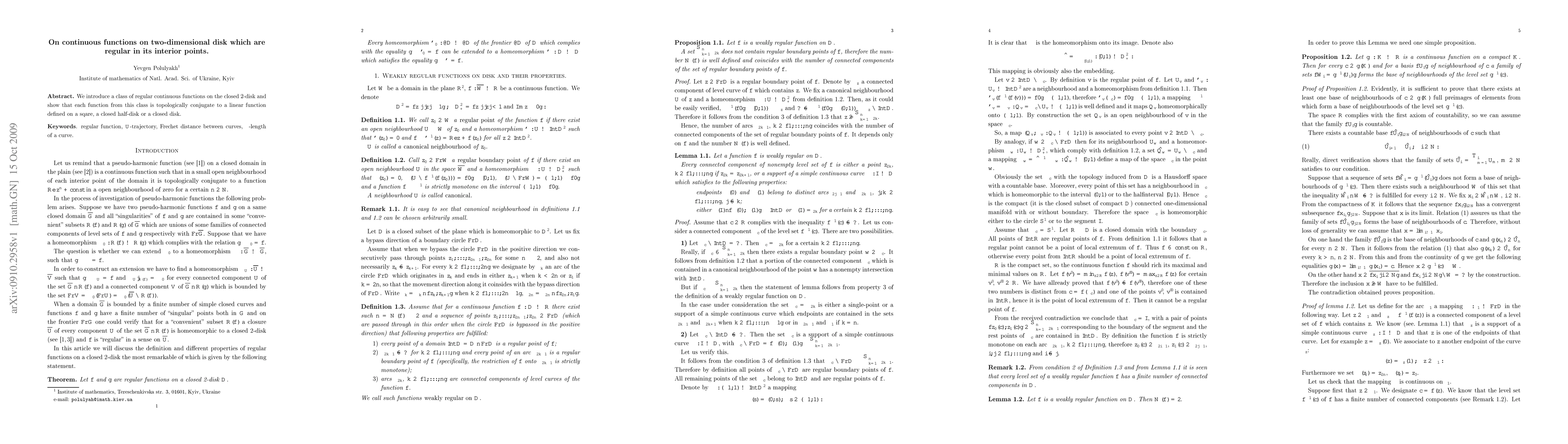We introduce a class of regular continuous functions on the closed 2-disk and show that each function from this class is topologically conjugate to a linear function defined on a sqare, a closed half-disk or a closed disk.