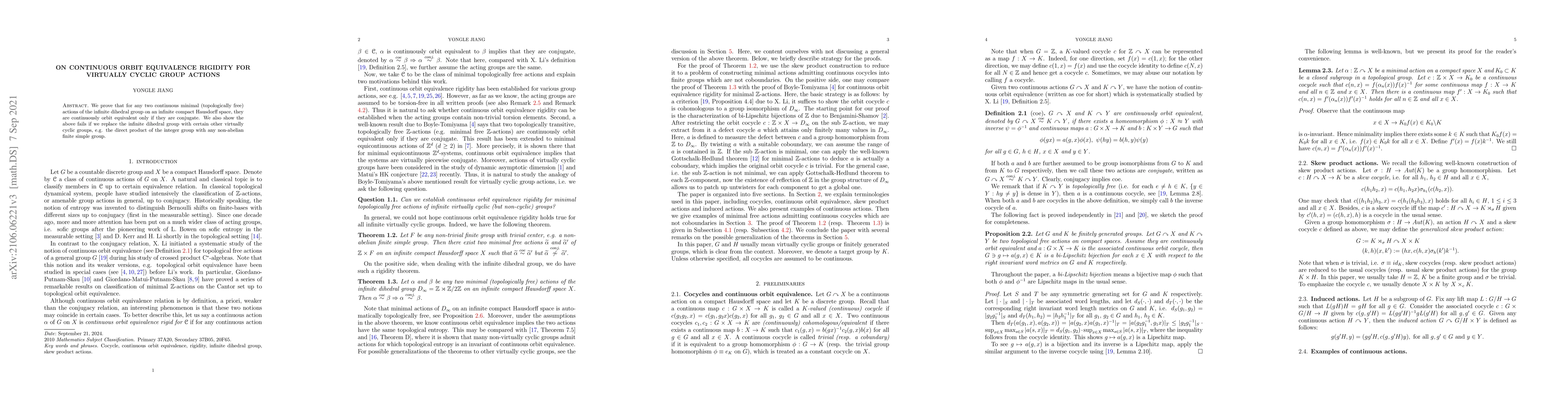 This paper proves continuous orbit equivalence rigidity for the infinite dihedral group's actions on compact spaces, showing they are conjugate if continuously orbit equivalent. It also demonstrates that this rigidity does not hold for certain other virtually cyclic groups, like the product of the integer group with non-abelian finite simple groups.