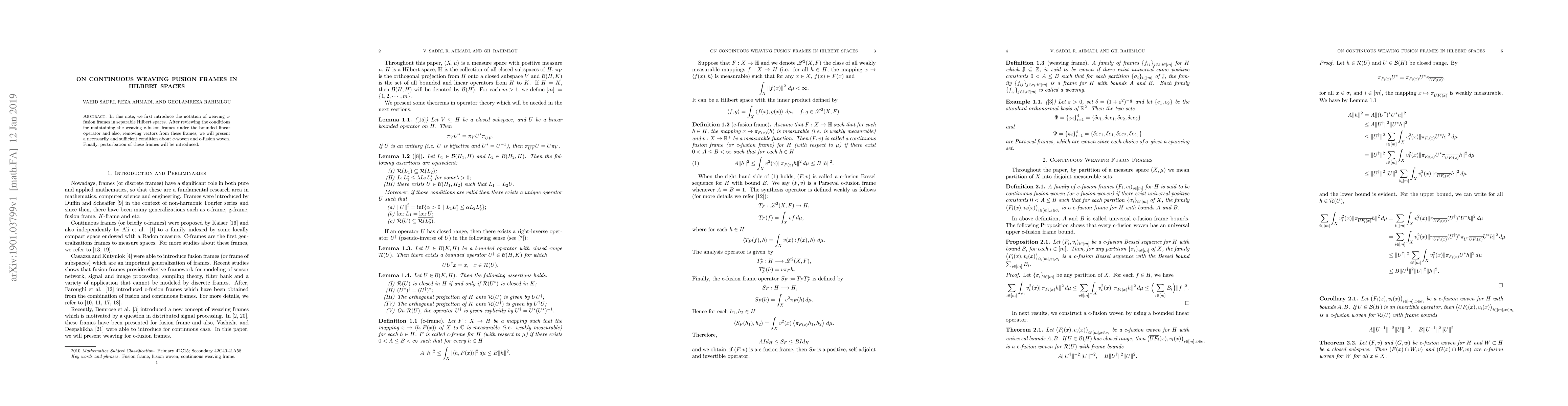 This paper introduces weaving cfusion frames in Hilbert spaces and discusses conditions for maintaining these frames under linear operators and vector removal. It also presents a necessary and sufficient condition for c-woven and c-fusion woven frames and explores frame perturbations.