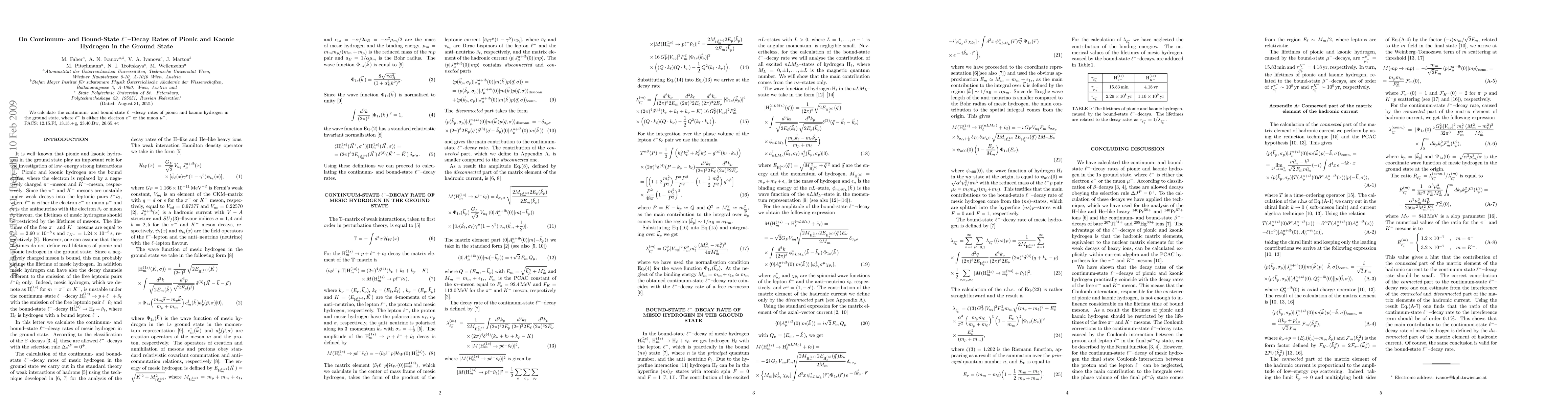 This paper calculates the decay rates for both continuum and bound states of pionic and kaonic hydrogen in the ground state, considering the decay of either electrons or muons (l^-). The results provide insights into the decay mechanisms in these exotic hydrogen forms.