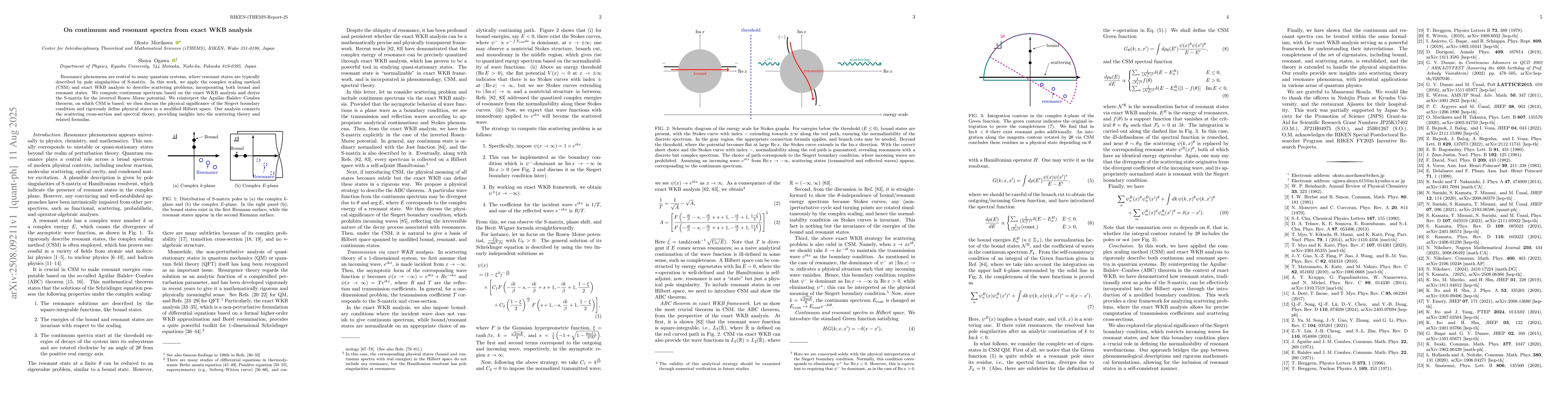 Resonance phenomena are central to many quantum systems, where resonant states are typically described by pole singularities of S-matrix. In this work, we apply the complex scaling method (CSM) and exact WKB analysis to describe scattering problems, incorporating both bound and resonant states. We compute continuum spectrum based on the exact WKB analysis and derive the S-matrix for the inverted Rosen--Morse potential. We reinterpret the Aguilar--Balslev--Combes theorem, on which CSM is based; we then discuss the physical significance of the Siegert boundary condition and rigorously define physical states in a modified Hilbert space. Our analysis connects the scattering cross-section and spectral theory, providing insights into the scattering theory and related formulas.