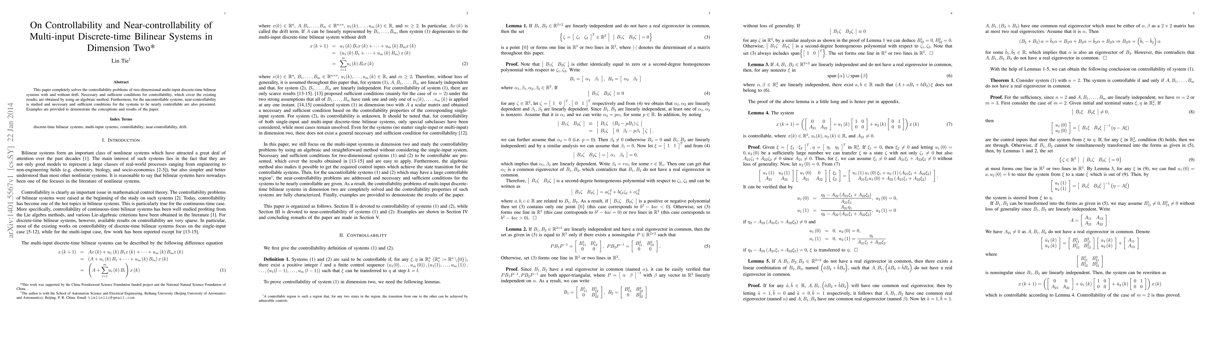 This paper provides necessary and sufficient conditions for controllability of two-dimensional multi-input discrete-time bilinear systems, using an algebraic method. It also explores near-controllability for uncontrollable systems and presents conditions for near-controllability, supplemented by illustrative examples.