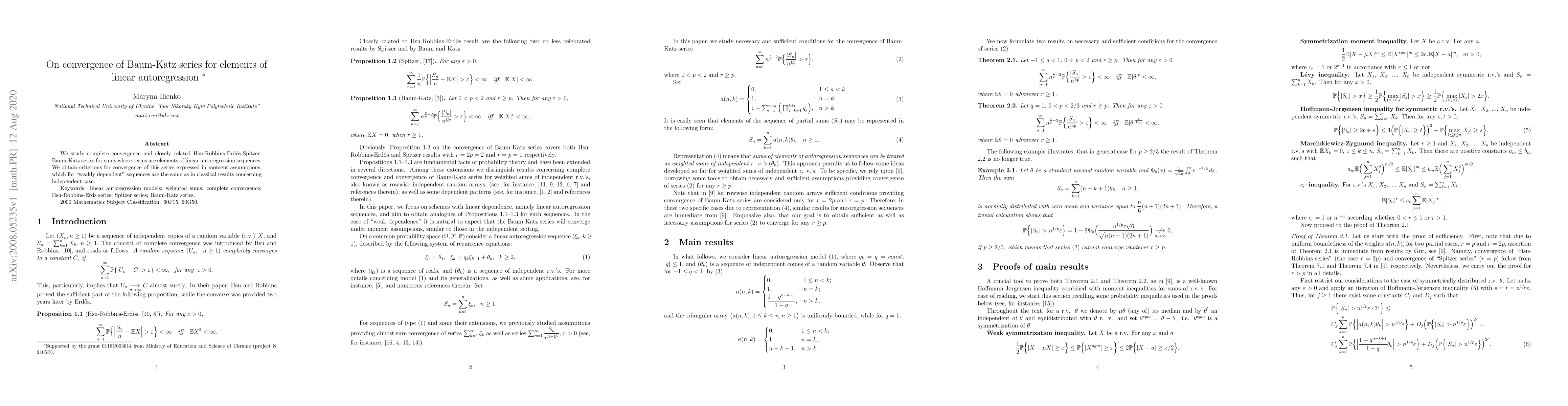 We study complete convergence and closely related Hsu-Robbins-Erd\H{o}s-Spitzer-Baum-Katz series for sums whose terms are elements of linear autoregression sequences. We obtain criterions for convergence of this series expressed in moment assumptions, which for "weakly dependent" sequences are the same as in classical results concerning independent case.
