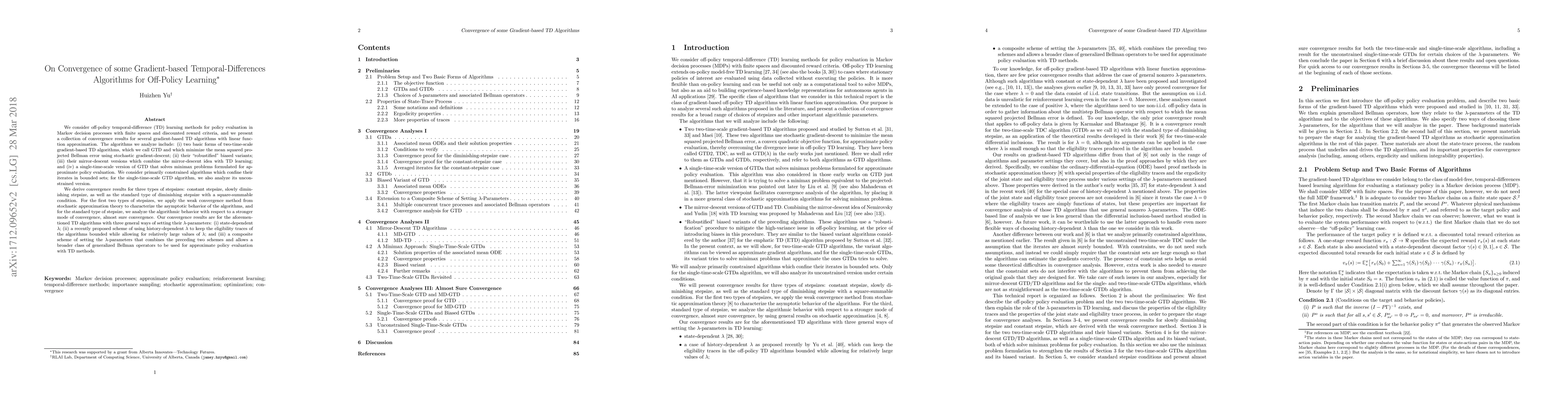 This paper investigates the convergence properties of various gradient-based temporal-difference algorithms for off-policy learning in Markov decision processes. It presents convergence results for different variants of two-time-scale gradient-based TD algorithms, including their robustified and mirror-descent versions, under different stepsize schemes and $\lambda$-parameter settings.