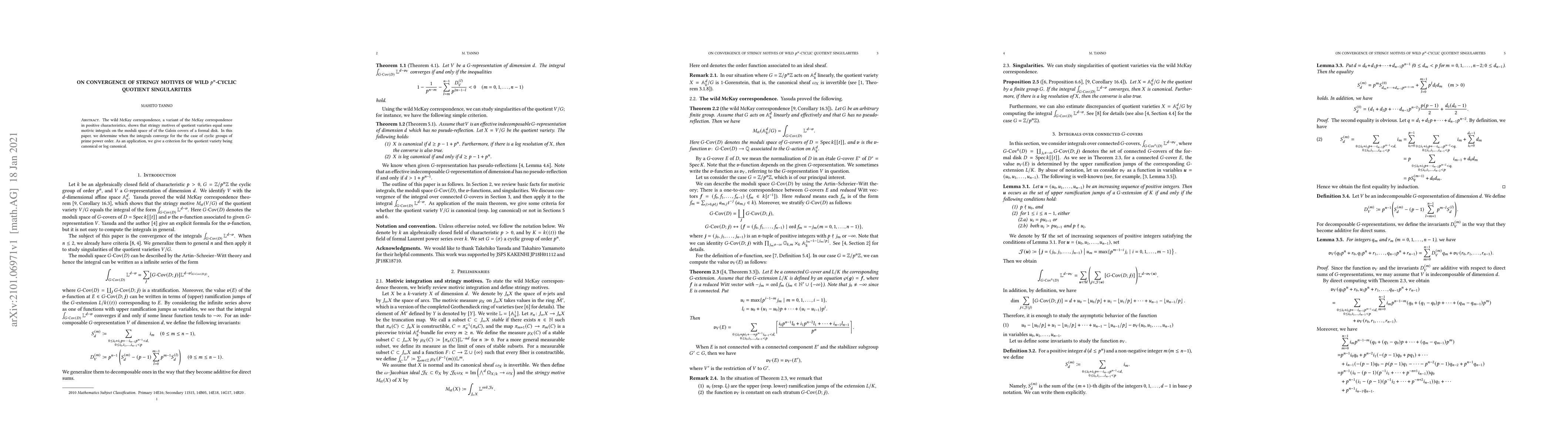 The wild McKay correspondence, a variant of the McKay correspondence in positive characteristics, shows that stringy motives of quotient varieties equal some motivic integrals on the moduli space of of the Galois covers of a formal disk. In this paper, we determine when the integrals converge for the the case of cyclic groups of prime power order. As an application, we give a criterion for the quotient variety being canonical or log canonical.