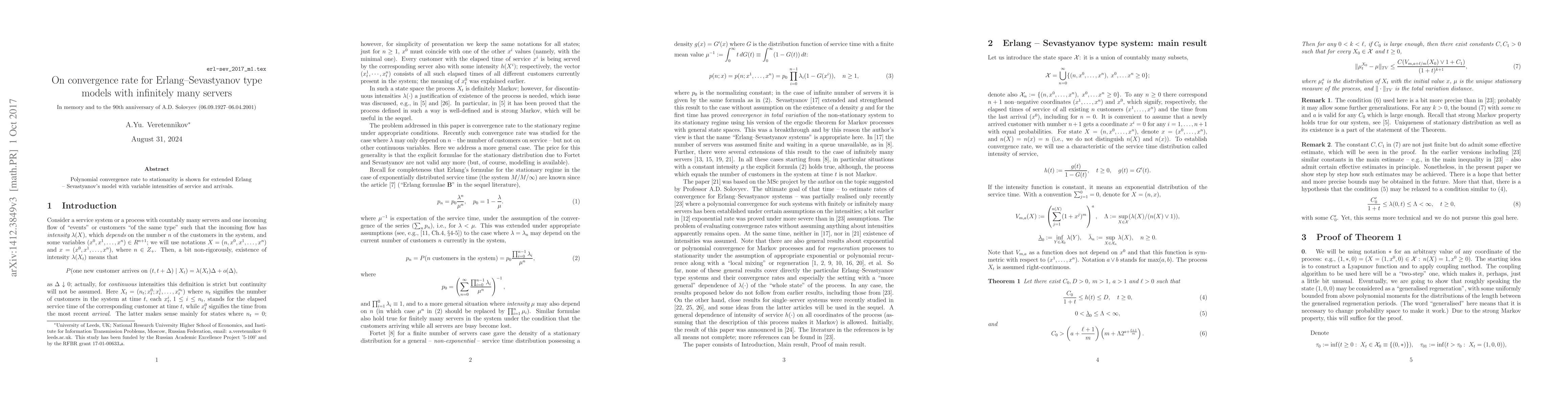 Polynomial convergence rate to stationarity is shown for extended Erlang -- Sevastyanov's model.