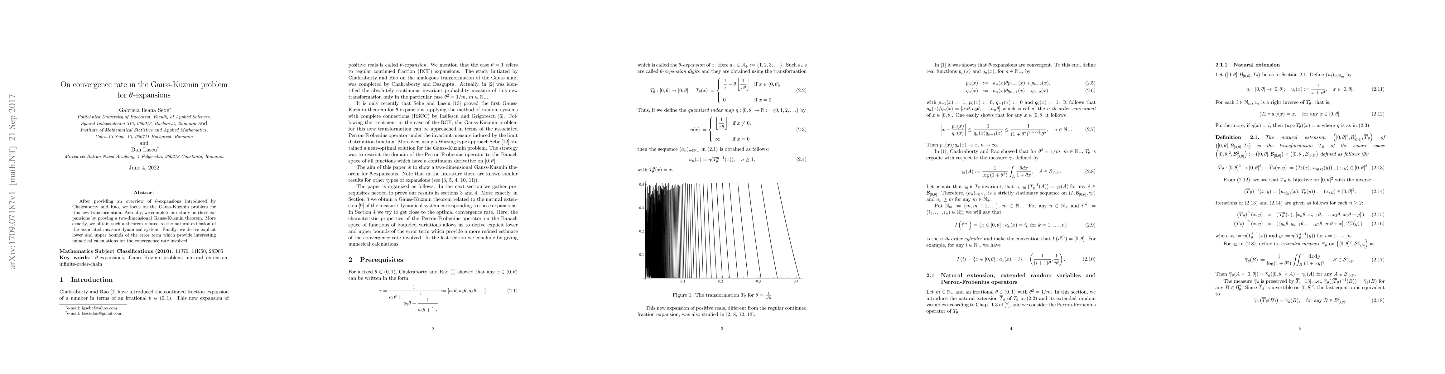 After providing an overview of $\theta$-expansions introduced by Chakraborty and Rao, we focus on the Gauss-Kuzmin problem for this new transformation. Actually, we complete our study on these expansions by proving a two-dimensional Gauss-Kuzmin theorem. More exactly, we obtain such a theorem related to the natural extension of the associated measure-dynamical system. Finally, we derive explicit lower and upper bounds of the error term which provide interesting numerical calculations for the convergence rate involved.