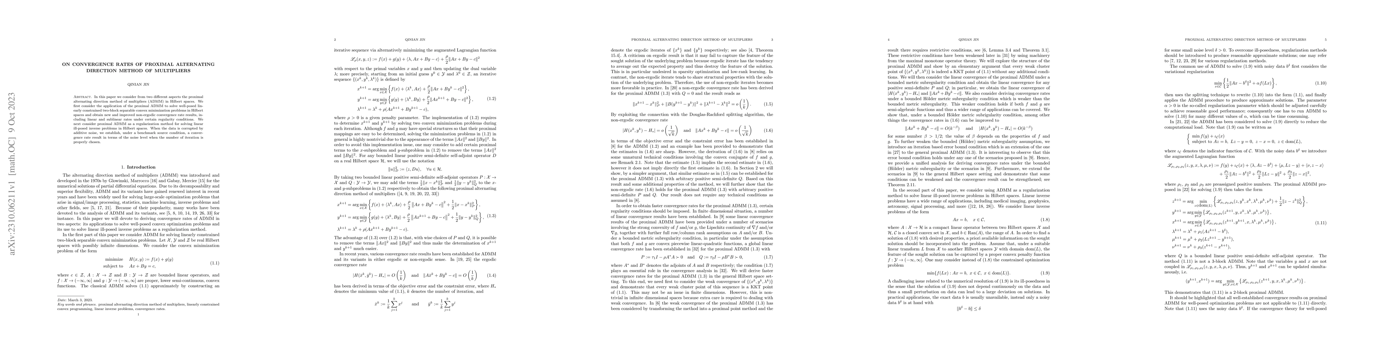 This paper explores the convergence rates of the proximal alternating direction method of multipliers (ADMM) in Hilbert spaces, achieving improved non-ergodic convergence rates for solving convex optimization problems and establishing convergence rates for regularization in solving ill-posed inverse problems under noisy conditions.
