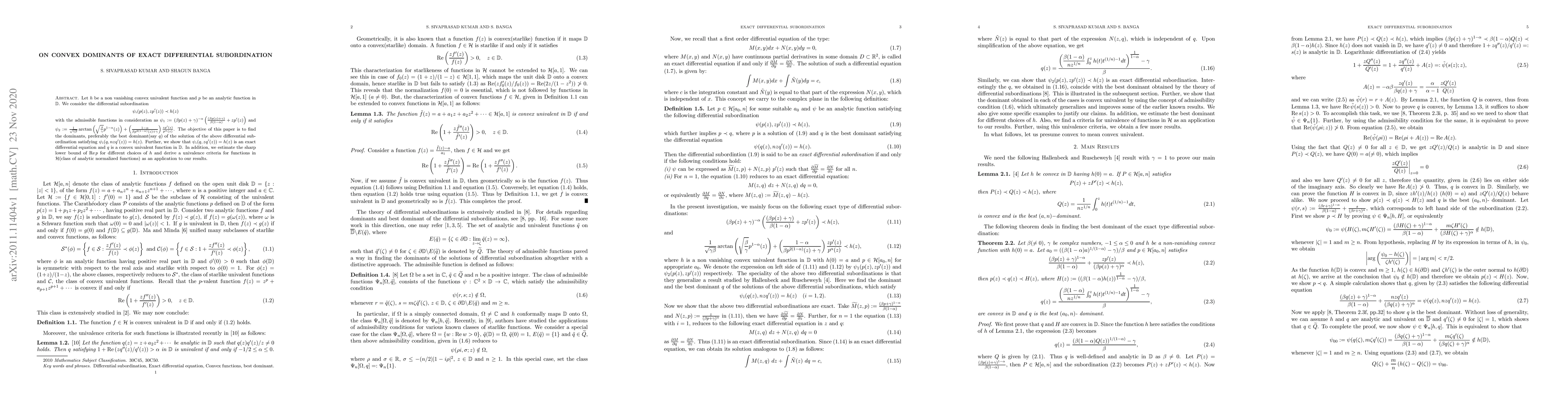 Let $h$ be a non vanishing convex univalent function and $p$ be an analytic function in $\mathbb{D}$. We consider the differential subordination $$\psi_i(p(z), z p'(z)) \prec h(z)$$ with the admissible functions in consideration as $\psi_1:=(\beta p(z)+\gamma)^{-\alpha}\left(\tfrac{(\beta p(z)+\gamma)}{\beta(1-\alpha)}+ z p'(z)\right)$ and $\psi_2:=\tfrac{1}{\sqrt{\gamma \beta}}\arctan\left(\sqrt{\tfrac{\beta}{\gamma}}p^{1-\alpha}(z)\right)+\left(\tfrac{1-\alpha}{\beta p^{2 (1-\alpha)}(z)+\gamma}\right)\tfrac{z p'(z)}{p^{\alpha}(z)}$. The objective of this paper is to find the dominants, preferably the best dominant(say $q$) of the solution of the above differential subordination satisfying $\psi_i(q, n zq'(z))= h(z)$. Further, we show that $\psi_i(q,zq'(z))= h(z)$ is an exact differential equation and $q$ is a convex univalent function in $\mathbb{D}$. In addition, we estimate the sharp lower bound of $\RE p$ for different choices of $h$ and derive a univalence criteria for functions in $\mathcal{H}$(class of analytic normalized functions) as an application to our results.