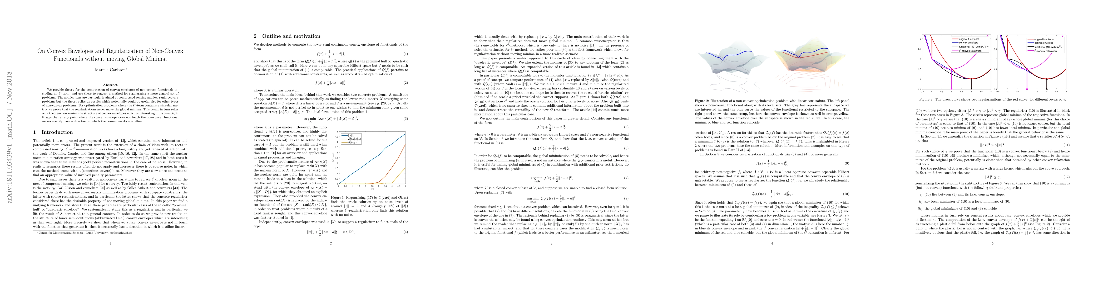 This paper develops a method for computing convex envelopes of non-convex functionals, incorporating an l2-term, and uses this to regularize a broader class of optimization problems. It ensures that regularizations do not shift global minima, particularly useful for compressed sensing and low rank recovery, with implications for other non-convex problems.