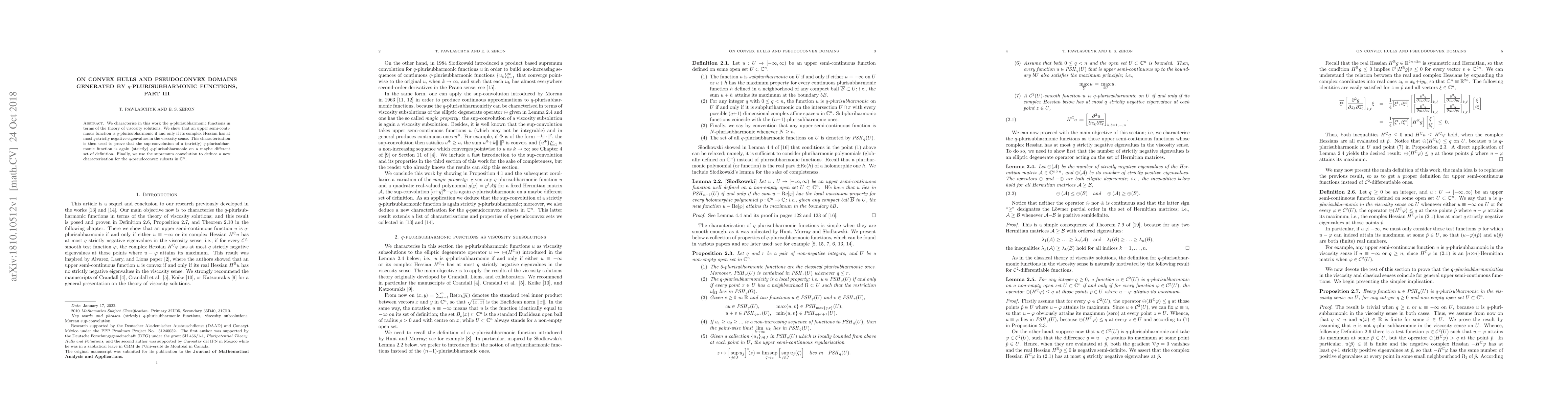 This paper characterizes $q$-plurisubharmonic functions via viscosity solutions, proving they are upper semicontinuous with a complex Hessian having at most $q$ strictly negative eigenvalues. It also demonstrates the supremum convolution of such functions remains $q$-plurisubharmonic, leading to a new characterization of $q$-pseudoconvex subsets in $\mathbb{C}^n$.