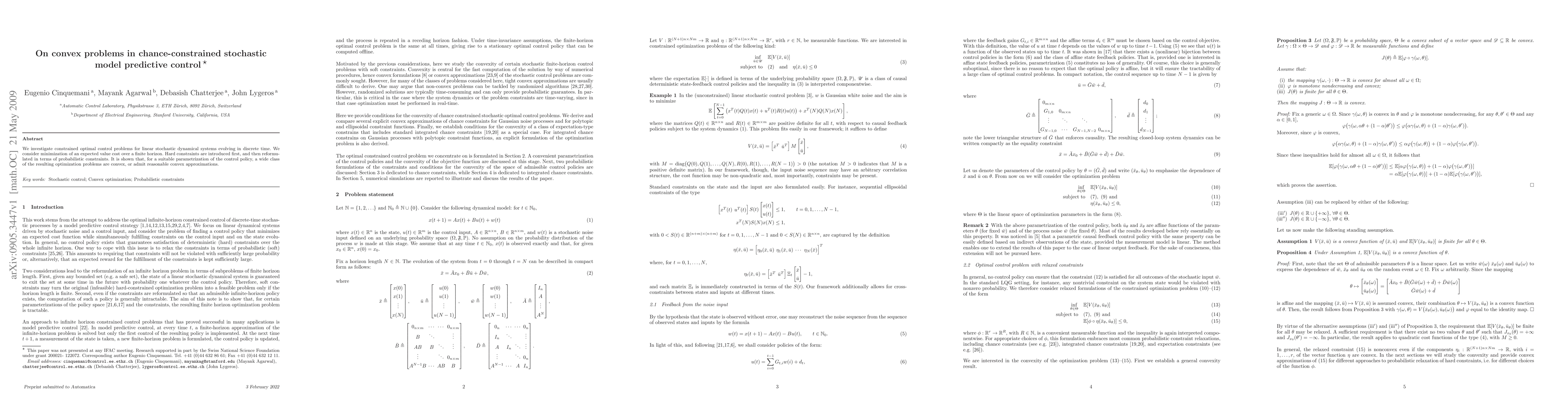 This paper explores optimal control for linear stochastic systems, transforming hard constraints into probabilistic ones. It demonstrates that many resulting optimization problems are convex or can be reasonably approximated by convex problems.