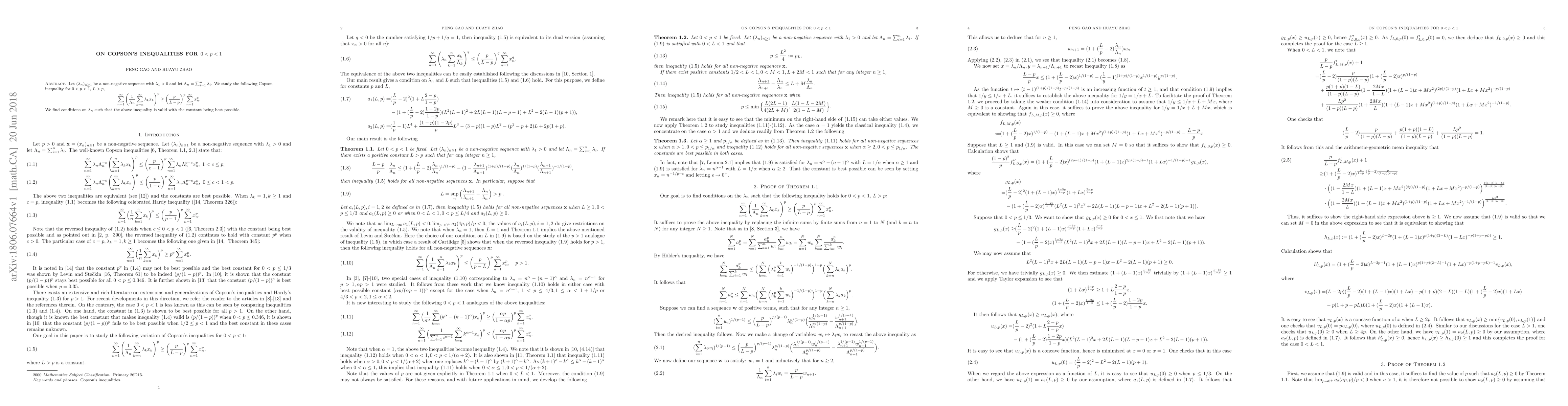 Let $(\lambda_n)_{n \geq 1}$ be a non-negative sequence with $\lambda_1>0$ and let $\Lambda_n=\sum^n_{i=1}\lambda_i$. We study the following Copson inequality for $0