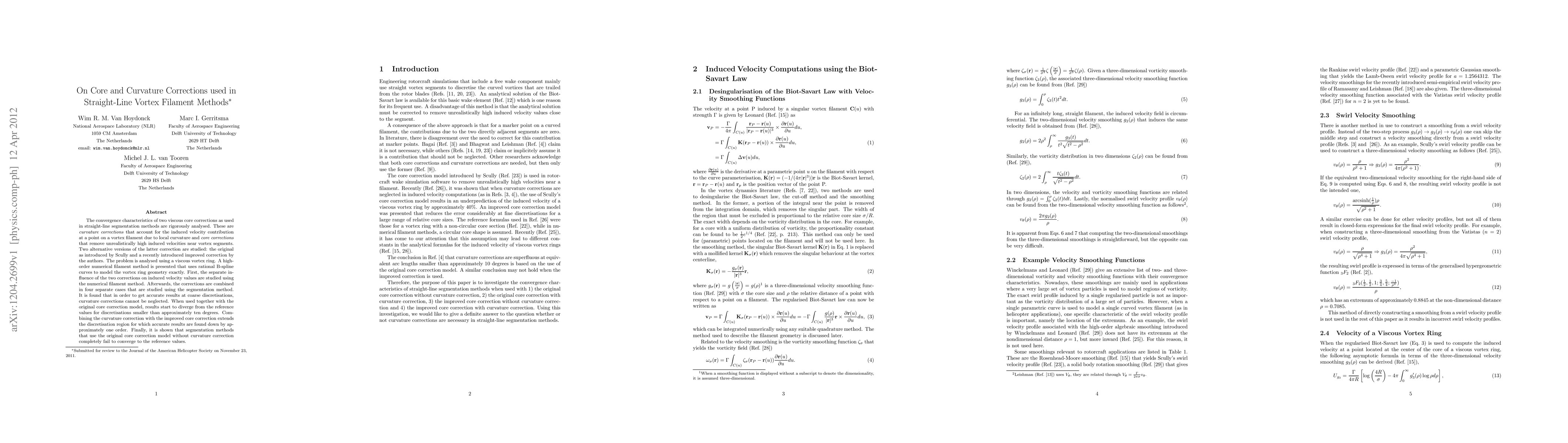 The convergence characteristics of two viscous core corrections as used in straight-line segmentation methods are rigorously analysed. These are \emph{curvature corrections} that account for the induced velocity contribution at a point on a vortex filament due to local curvature and \emph{core corrections} that remove unrealistically high induced velocities near vortex segments. Two alternative versions of the latter correction are studied: the original as introduced by Scully and a recently introduced improved correction by the authors. The problem is analysed using a viscous vortex ring. A high-order numerical filament method is presented that uses rational B-spline curves to model the vortex ring geometry exactly. First, the separate influence of the two corrections on induced velocity values are studied using the numerical filament method. Afterwards, the corrections are combined in four separate cases that are studied using the segmentation method. It is found that in order to get accurate results at coarse discretisations, curvature corrections cannot be neglected. When used together with the original core correction model, results start to diverge from the reference values for discretisations smaller than approximately ten degrees. Combining the curvature correction with the improved core correction extends the discretisation region for which accurate results are found down by approximately one order. Finally, it is shown that segmentation methods that use the original core correction model without curvature correction completely fail to converge to the reference values.