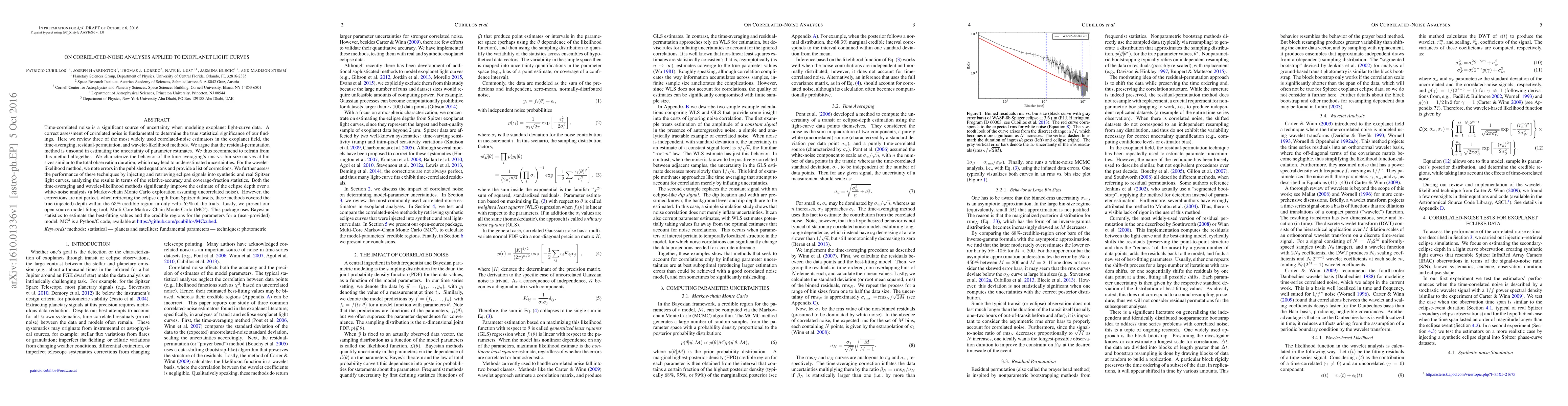 Time-correlated noise is a significant source of uncertainty when modeling exoplanet light-curve data. A correct assessment of correlated noise is fundamental to determine the true statistical significance of our findings. Here we review three of the most widely used correlated-noise estimators in the exoplanet field, the time-averaging, residual-permutation, and wavelet-likelihood methods. We argue that the residual-permutation method is unsound in estimating the uncertainty of parameter estimates. We thus recommend to refrain from this method altogether. We characterize the behavior of the time averaging's rms-vs.-bin-size curves at bin sizes similar to the total observation duration, which may lead to underestimated uncertainties. For the wavelet-likelihood method, we note errors in the published equations and provide a list of corrections. We further assess the performance of these techniques by injecting and retrieving eclipse signals into synthetic and real Spitzer light curves, analyzing the results in terms of the relative-accuracy and coverage-fraction statistics. Both the time-averaging and wavelet-likelihood methods significantly improve the estimate of the eclipse depth over a white-noise analysis (a Markov-chain Monte Carlo exploration assuming uncorrelated noise). However, the corrections are not perfect, when retrieving the eclipse depth from Spitzer datasets, these methods covered the true (injected) depth within the 68\% credible region in only $\sim$45--65\% of the trials. Lastly, we present our open-source model-fitting tool, Multi-Core Markov-Chain Monte Carlo ({MC$^3$}). This package uses Bayesian statistics to estimate the best-fitting values and the credible regions for the parameters for a (user-provided) model. {MC$^3$} is a Python/C code, available at https://github.com/pcubillos/MCcubed.
