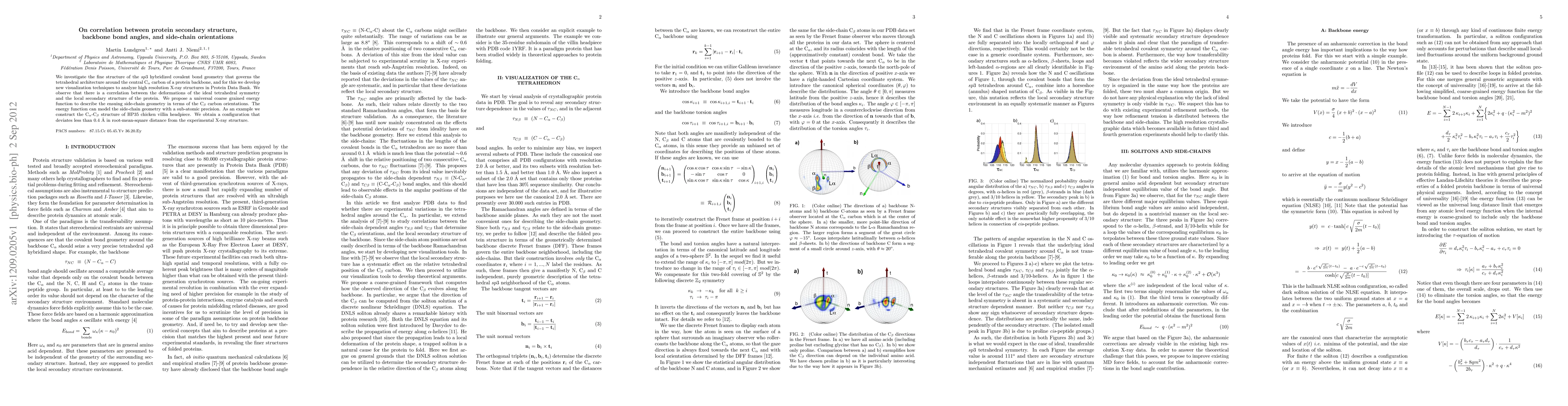 This paper develops new visualization techniques to analyze high-resolution X-ray structures, revealing a correlation between the tetrahedral geometry around the C$_\alpha$ carbon and the local secondary structure of proteins. It proposes a universal energy function to model side-chain geometry with sub-atomic precision, demonstrated by accurately reconstructing the C$_\alpha$-C$_\beta$ structure of HP35 chicken villin headpiece.