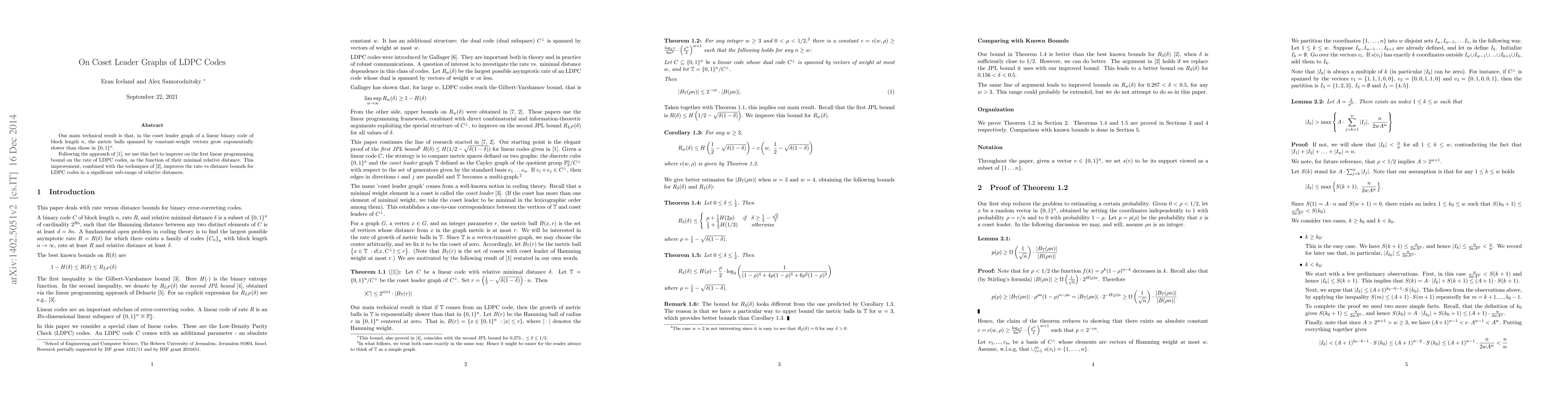 Our main technical result is that, in the coset leader graph of a linear binary code of block length n, the metric balls spanned by constant-weight vectors grow exponentially slower than those in $\{0,1\}^n$. Following the approach of Friedman and Tillich (2006), we use this fact to improve on the first linear programming bound on the rate of LDPC codes, as the function of their minimal distance. This improvement, combined with the techniques of Ben-Haim and Lytsin (2006), improves the rate vs distance bounds for LDPC codes in a significant sub-range of relative distances.