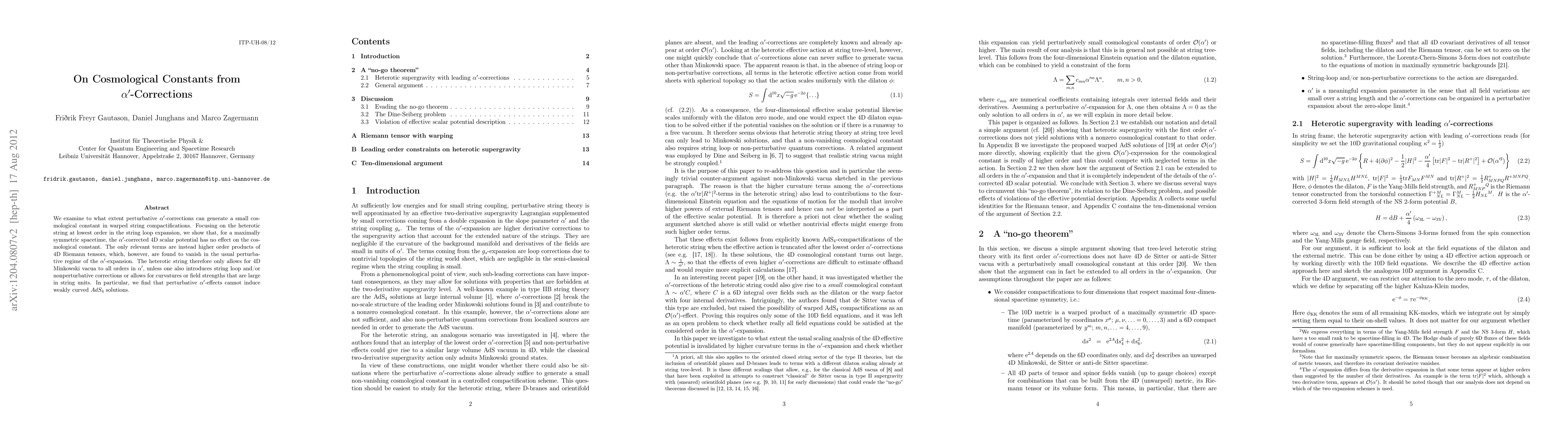 This paper investigates how perturbative alpha'-corrections in heterotic string theory might generate a small cosmological constant in warped compactifications. It concludes that such corrections do not affect the cosmological constant in the usual perturbative regime, allowing only for 4D Minkowski vacua unless nonperturbative effects or large curvatures/field strengths are considered.