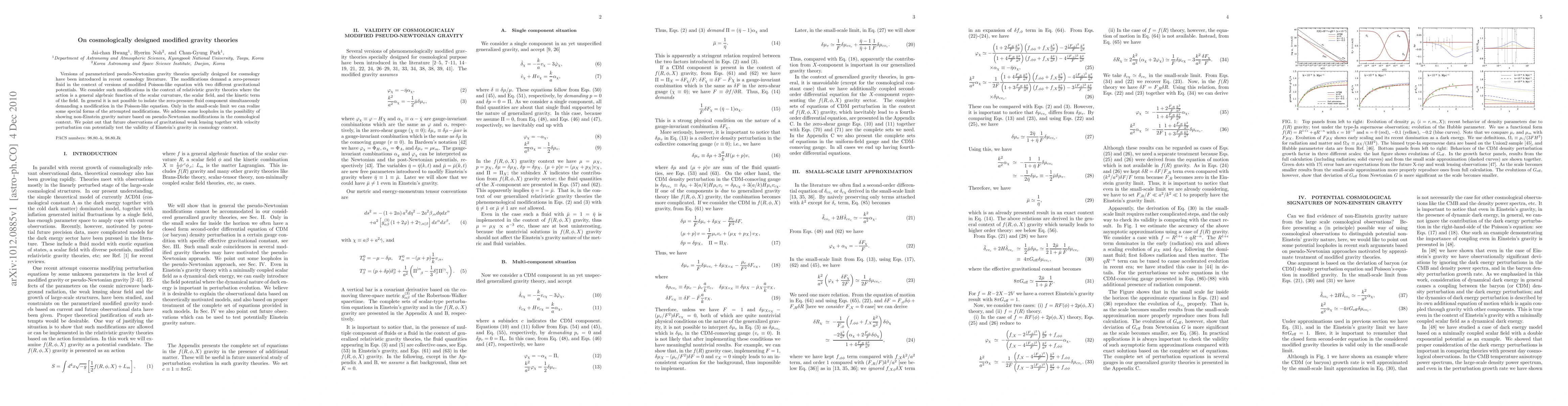 Versions of parameterized pseudo-Newtonian gravity theories specially designed for cosmology have been introduced in recent cosmology literature. The modifications demand a zero-pressure fluid in the context of versions of modified Poisson-like equation with two different gravitational potentials. We consider such modifications in the context of relativistic gravity theories where the action is a general algebraic function of the scalar curvature, the scalar field, and the kinetic term of the field. In general it is not possible to isolate the zero-pressure fluid component simultaneously demanding a modification in the Poisson-like equation. Only in the small-scale limit we can realize some special forms of the attempted modifications. We address some loopholes in the possibility of showing non-Einstein gravity nature based on pseudo-Newtonian modifications in the cosmological context. We point out that future observations of gravitational weak lensing together with velocity perturbation can potentially test the validity of Einstein's gravity in cosmology context.