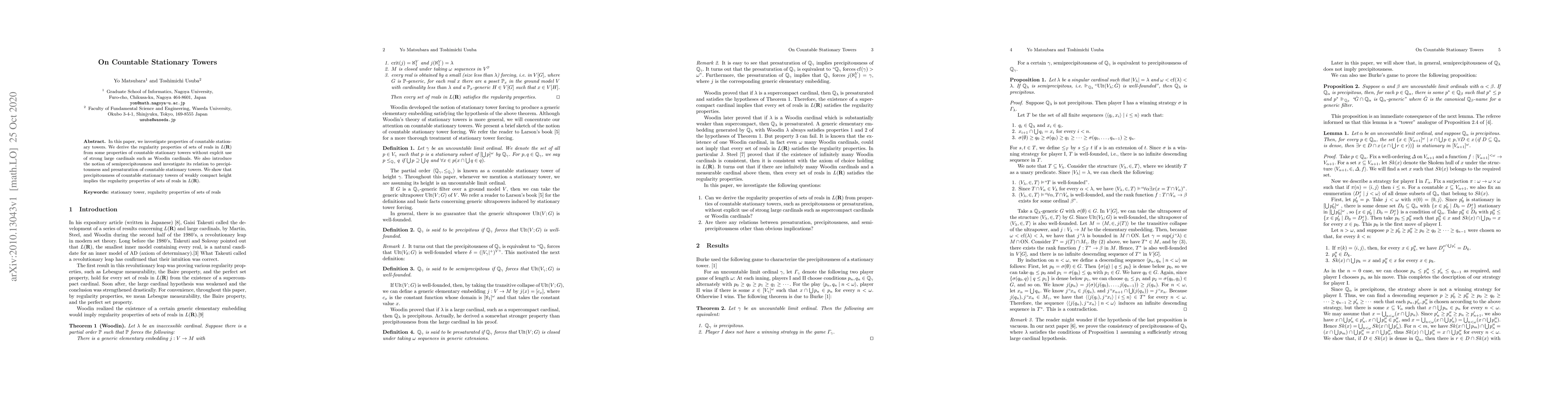 This paper explores countable stationary towers, deriving regularity properties of sets of reals in $L(\mathbf R)$ from their properties without relying on strong large cardinals. It introduces semiprecipitousness and demonstrates that the precipitousness of such towers at weakly compact height ensures these regularity properties.