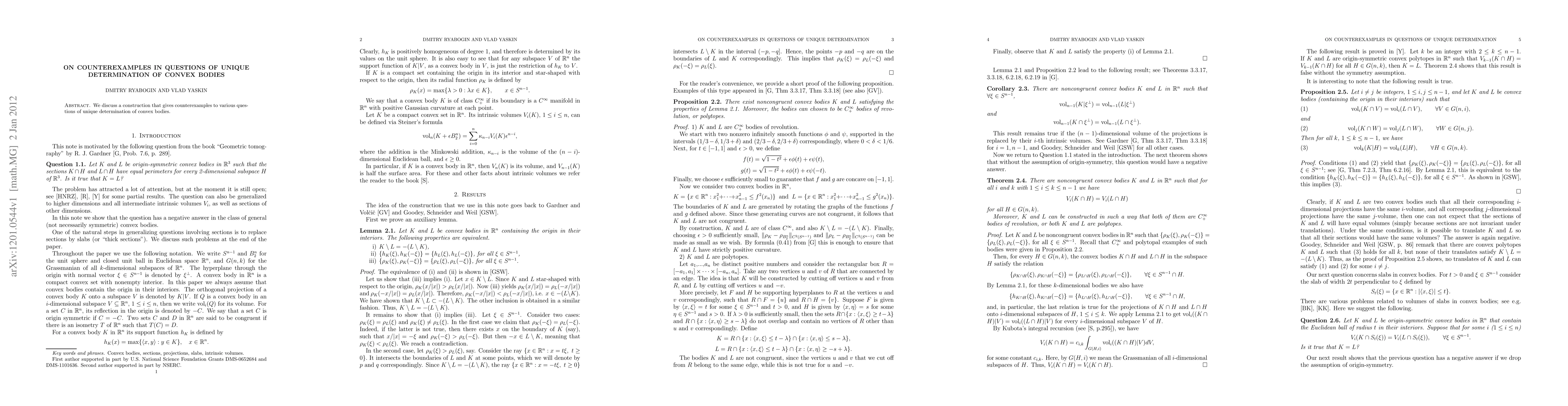 This paper constructs counterexamples to questions of unique determination of convex bodies, challenging existing understanding in the field.