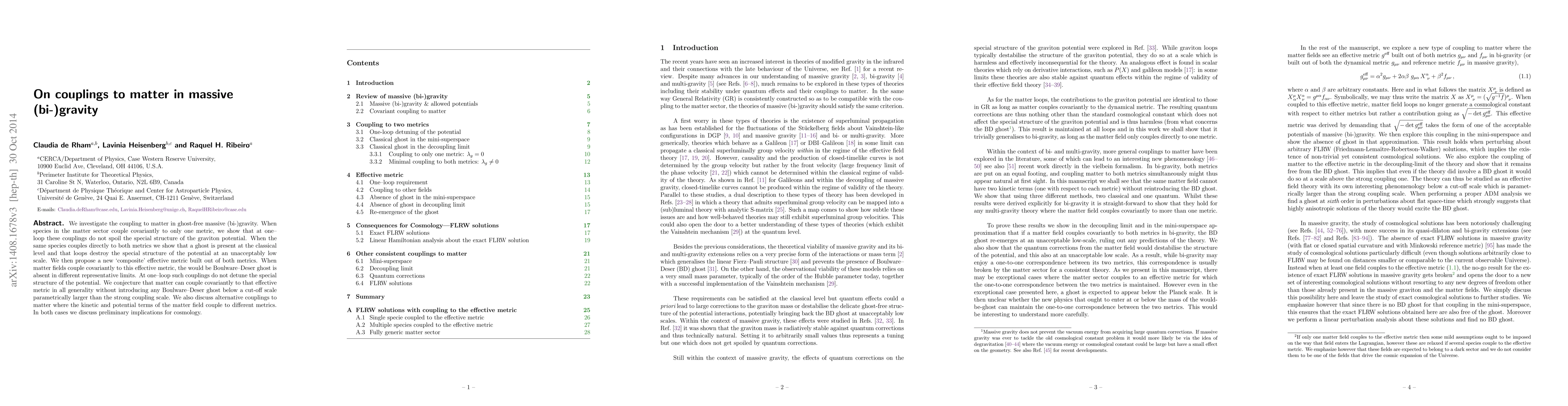 This paper explores the implications of different matter couplings in massive (bi-)gravity, showing that coupling to only one metric preserves the potential's special structure, while coupling to both metrics introduces a ghost and disrupts the potential at a low scale. A new composite metric is proposed to avoid these issues, maintaining the potential's structure and hypothesizing its applicability in broader contexts.