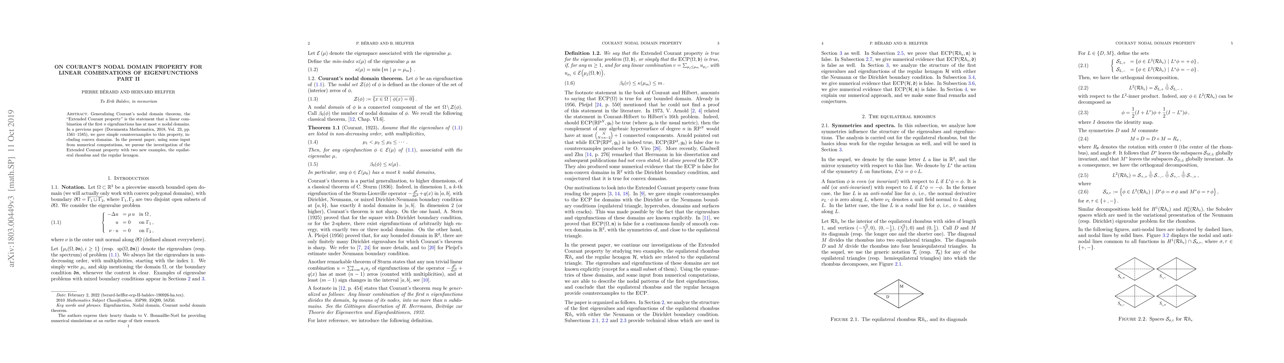 This paper investigates the Extended Courant property for linear combinations of eigenfunctions, providing counterexamples to the theorem in convex domains. It introduces numerical computations to explore the property further with the equilateral rhombus and regular hexagon.