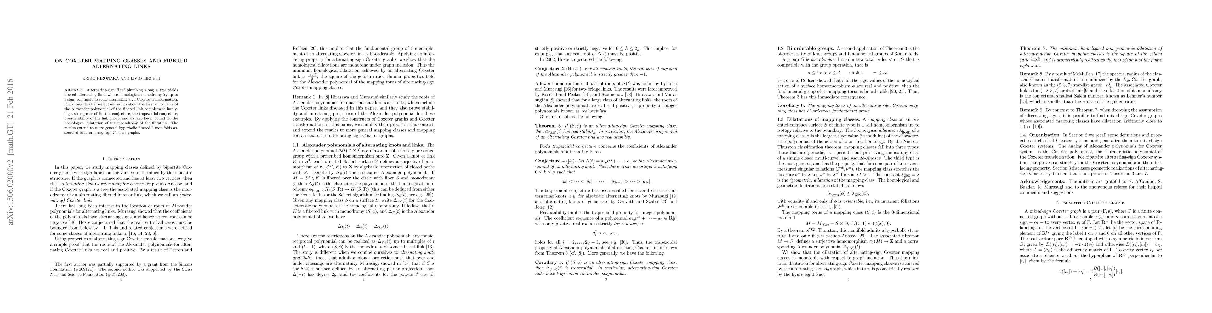 The paper establishes a connection between fibered alternating links and alternating-sign Coxeter transformations, leading to results about the Alexander polynomial, Hoste's conjecture, bi-orderability of link groups, and bounds on homological dilatation. These findings apply broadly to hyperbolic fibered 3-manifolds tied to alternating-sign Coxeter graphs.