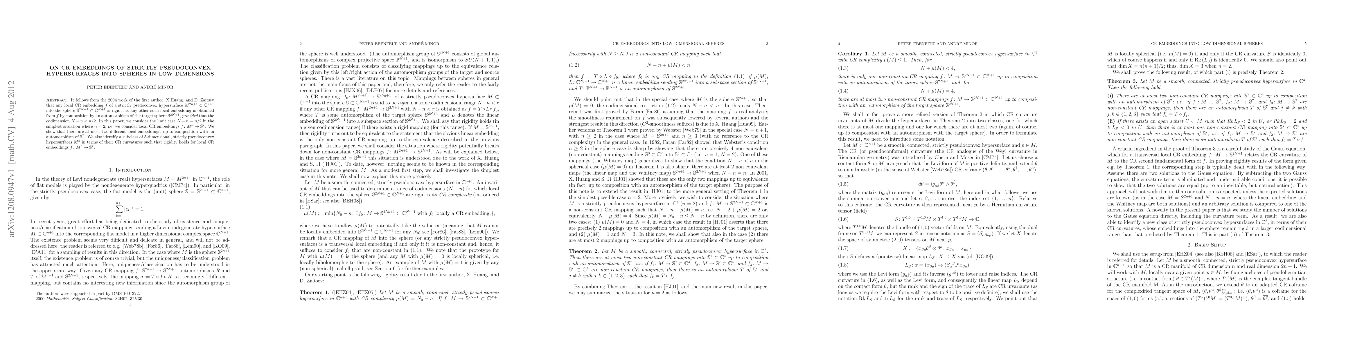 The paper investigates CR embeddings of strictly pseudoconvex hypersurfaces into spheres in low dimensions, specifically focusing on the limit case where the codimension equals half the dimension of the hypersurface.