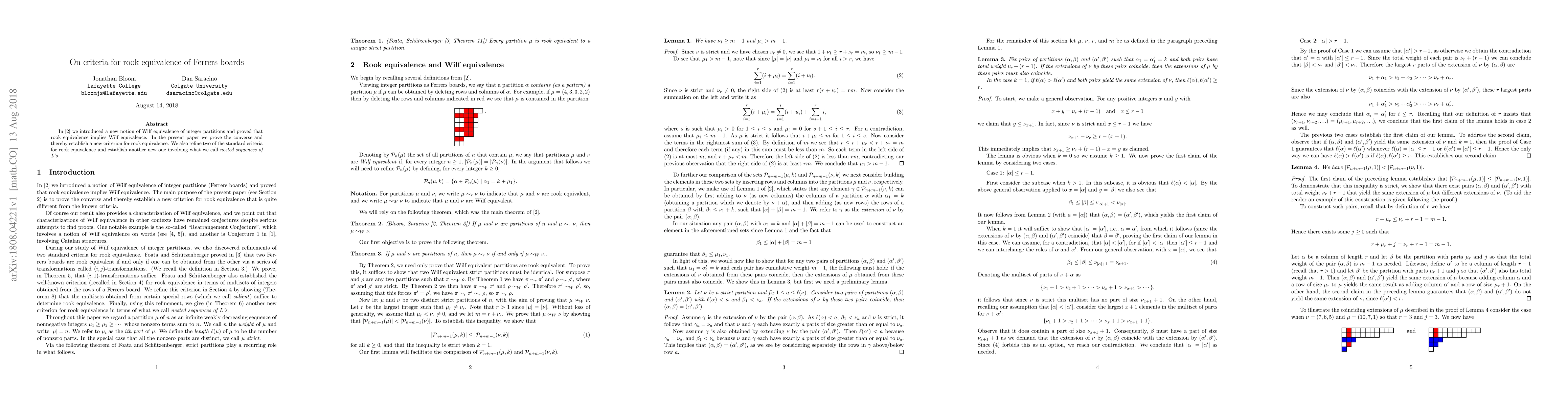 This paper establishes that rook equivalence implies Wilf equivalence in the reverse direction, providing a new criterion for rook equivalence. It also refines existing criteria and introduces a novel criterion based on nested sequences of L's.