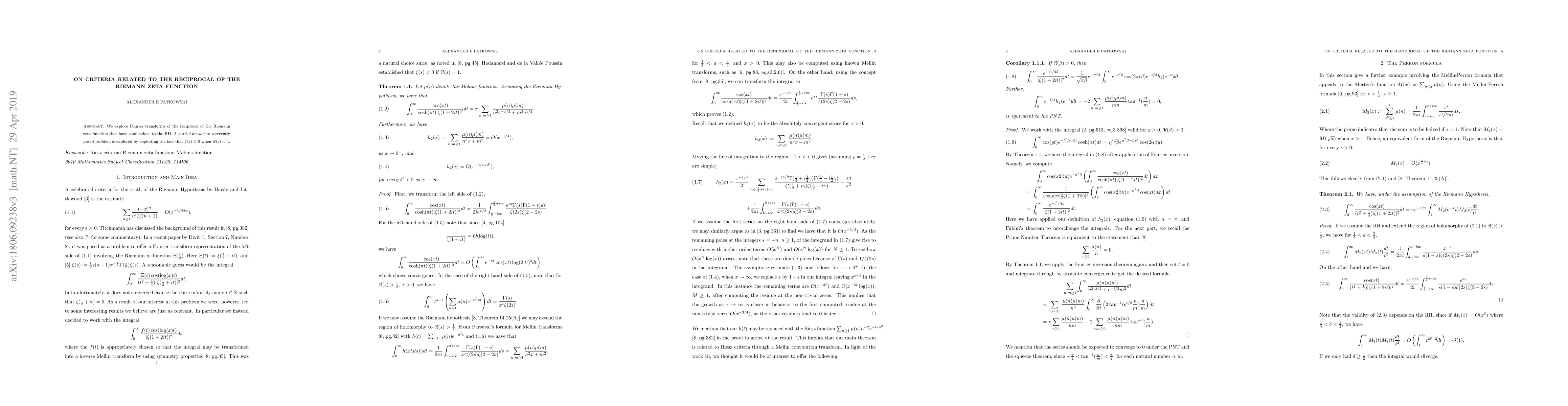 We explore Fourier transforms of the reciprocal of the Riemann zeta function that have connections to the RH. A partial answer to a recently posed problem is explored by exploiting the fact that $\zeta(s)\neq0$ when $\Re(s)=1.$