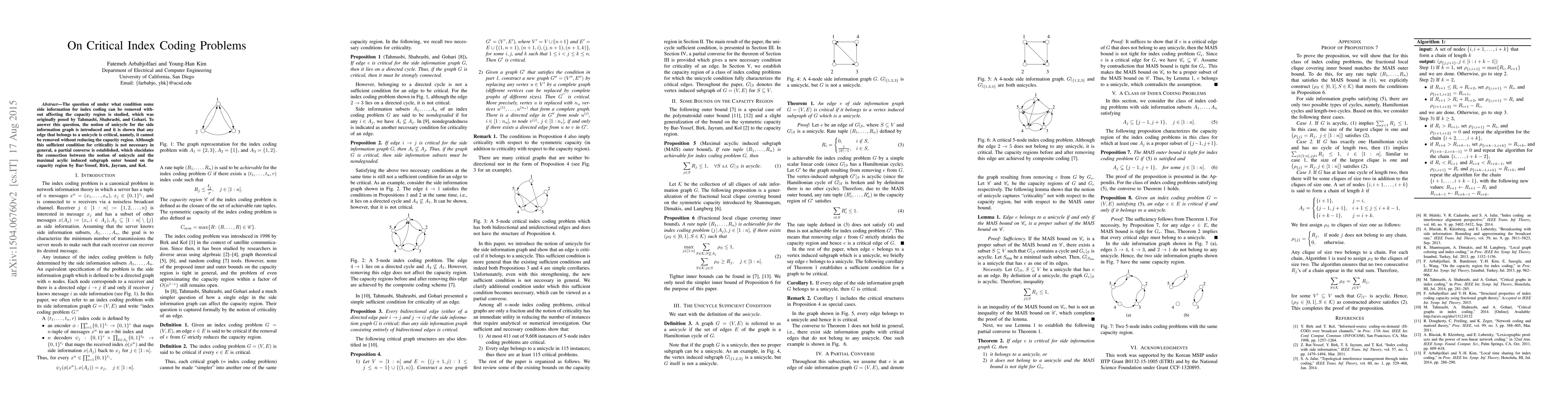 The question of under what condition some side information for index coding can be removed without affecting the capacity region is studied, which was originally posed by Tahmasbi, Shahrasbi, and Gohari. To answer this question, the notion of unicycle for the side information graph is introduced and it is shown that any edge that belongs to a unicycle is critical, namely, it cannot be removed without reducing the capacity region. Although this sufficient condition for criticality is not necessary in general, a partial converse is established, which elucidates the connection between the notion of unicycle and the maximal acylic induced subgraph outer bound on the capacity region by Bar-Yossef, Birk, Jayram, and Kol.