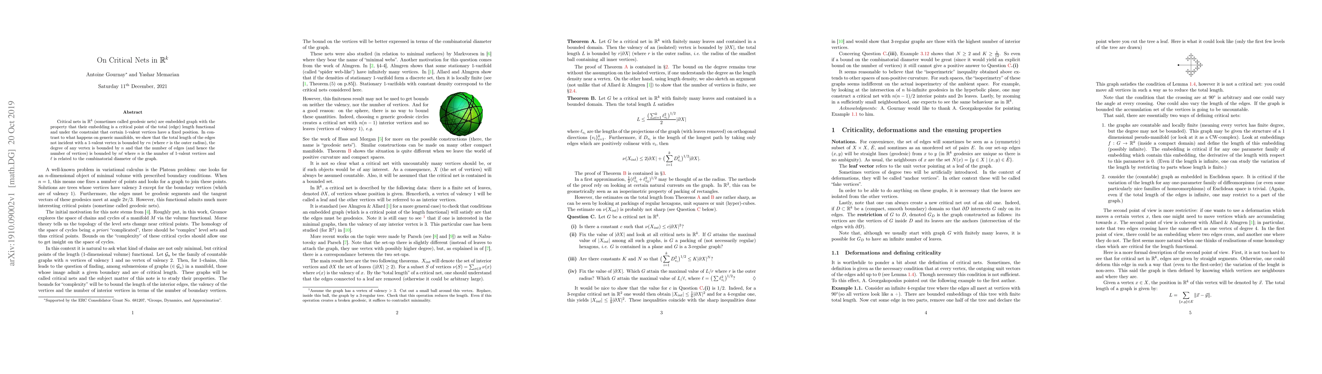 Critical nets in $\mathbb{R}^k$ (sometimes called geodesic nets) are embedded graph with the property that their embedding is a critical point of the total (edge) length functional and under the constraint that certain 1-valent vertices (leaves) have a fixed position. In contrast to what happens on generic manifolds, we show that, if n is the number of 1-valent vertices, the total length of the edges not incident with a 1-valent vertex is bounded by rn (where r is the outer radius), the degree of any vertex is bounded by n and that the number of edges (and hence the number of vertices) is bounded by nl where l is related to the combinatorial diameter of the graph.