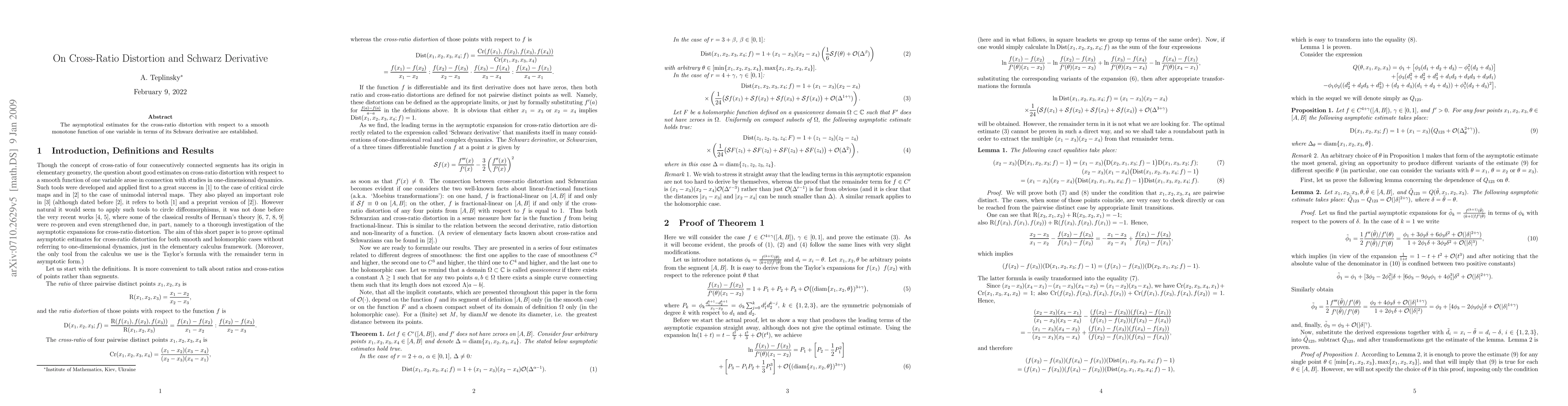 This paper proves asymptotic estimates for cross-ratio distortion in terms of its Schwarz derivative, a key concept in complex analysis, with potential implications for understanding geometric transformations.