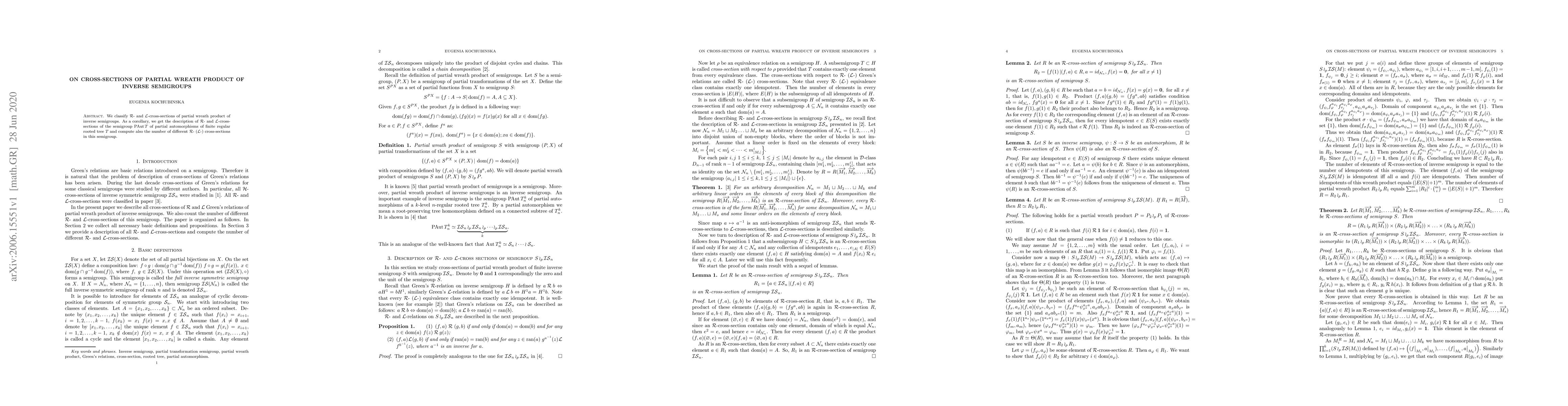 Researchers classify cross-sections of partial wreath product of inverse semigroups, providing a description of R- and L-cross-sections with implications for the semigroup of partial automorphisms of finite regular rooted trees.
