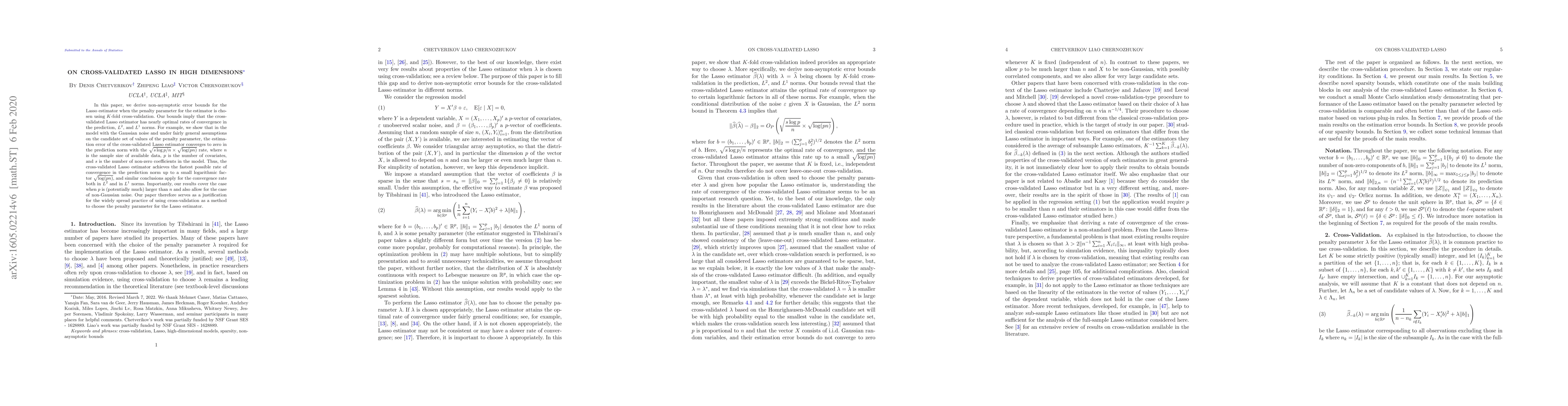 This paper provides non-asymptotic error bounds for the Lasso estimator with cross-validated penalty selection, showing nearly optimal convergence rates in prediction, $L^2$, and $L^1$ norms. It justifies the use of cross-validation in high-dimensional settings where the number of covariates exceeds the sample size.