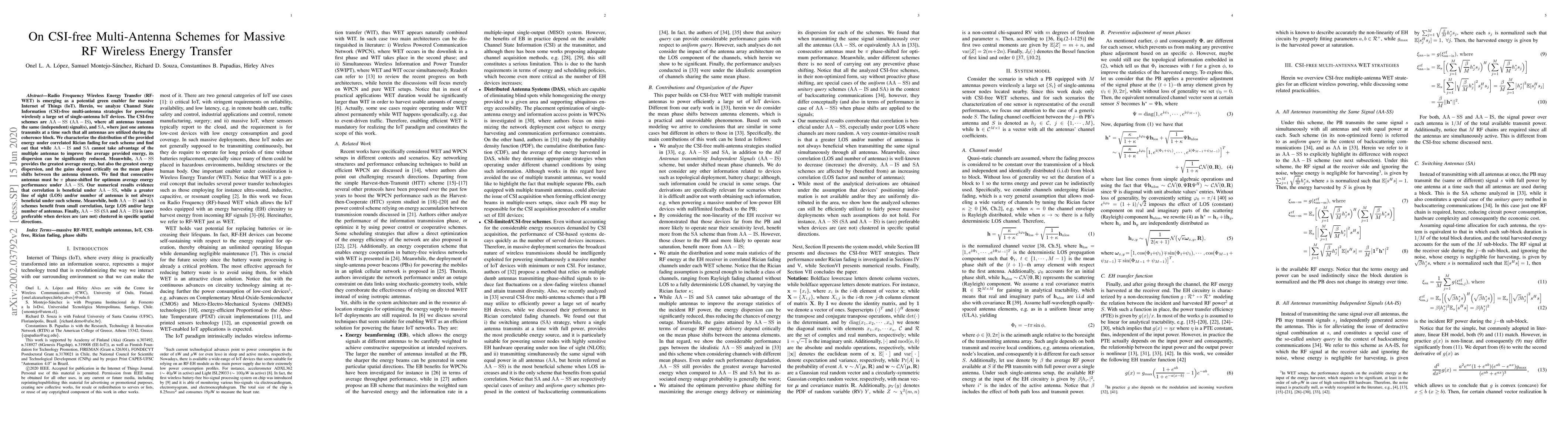 This paper analyzes CSI-free multi-antenna strategies for wireless energy transfer to numerous IoT devices, finding that while AA-IS and SA reduce energy dispersion, AA-SS maximizes average energy but with high dispersion, requiring $\pi$ phase shifts between antennas for optimal performance. Correlation benefits AA-SS, while AA-IS and SA benefit from small correlation and larger line of sight.