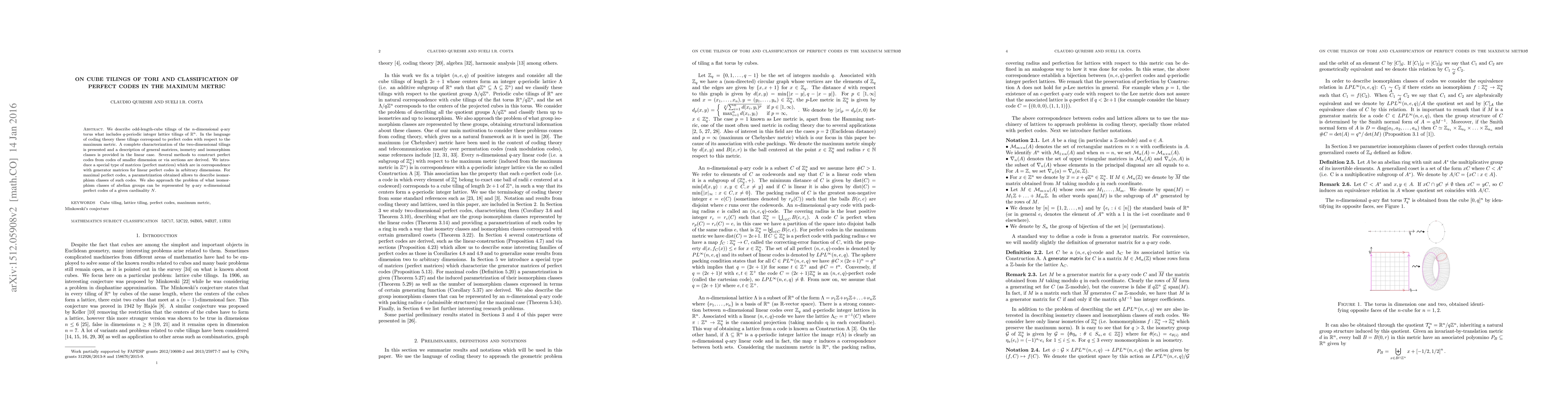 This research paper characterizes odd-length-cube tilings of the n-dimensional torus and describes methods to construct perfect codes from smaller dimension codes or via sections, providing a framework for understanding the structure of linear perfect codes in arbitrary dimensions.