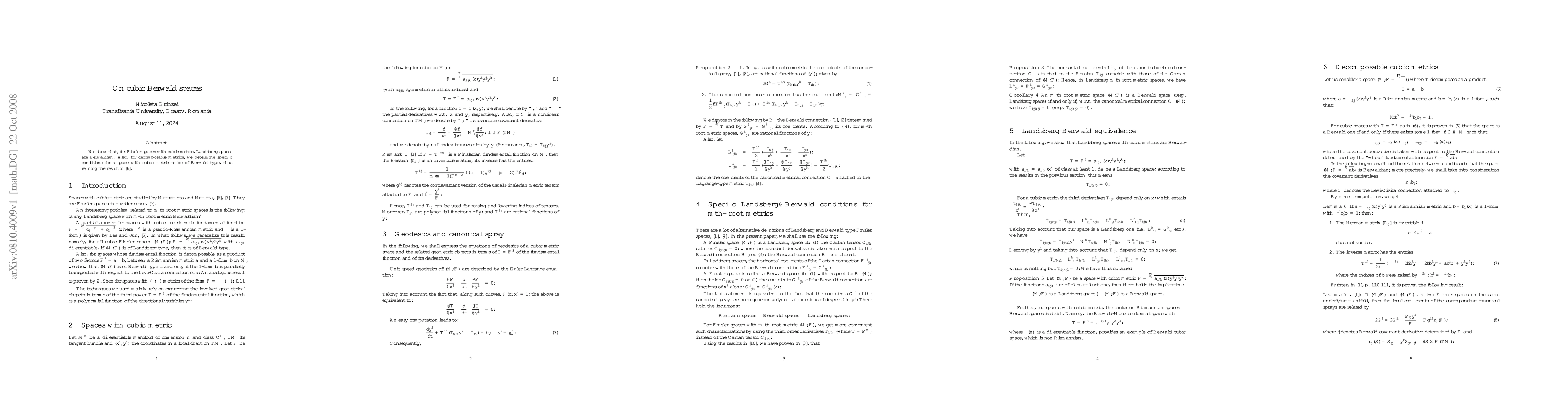 Two-line summary: This paper demonstrates that Landsberg spaces within cubic Finsler spaces are Berwaldian. It also specifies conditions under which a decomposable metric with a cubic metric results in a Berwald type space, thereby refining a prior result.