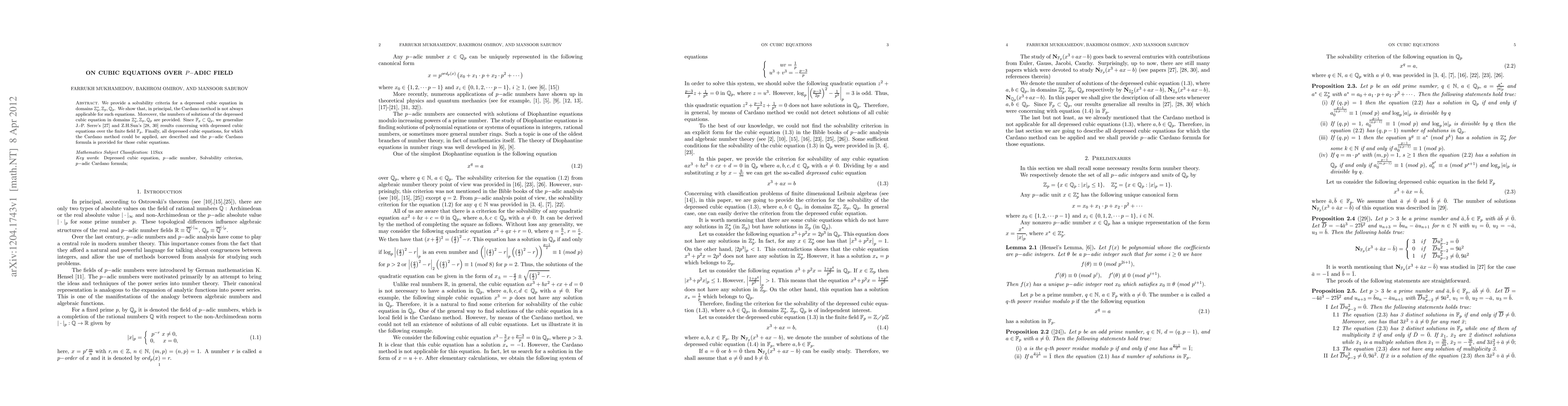 This paper presents a solvability criterion for depressed cubic equations in $p$-adic fields $\bz_p^{*}, \bz_p, \bq_p$ and highlights limitations of the Cardano method. It also generalizes prior results and provides $p$-adic Cardano formulas for applicable cubic equations.