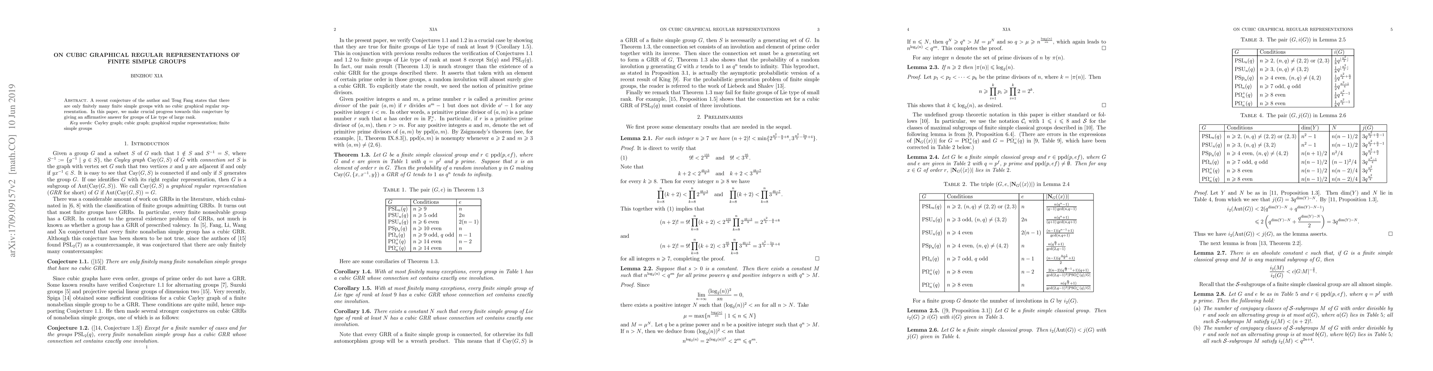 This paper confirms a conjecture regarding the finiteness of finite simple groups without cubic graphical regular representations, specifically addressing groups of Lie type with large rank. This significant advancement brings the conjecture closer to being universally proven.