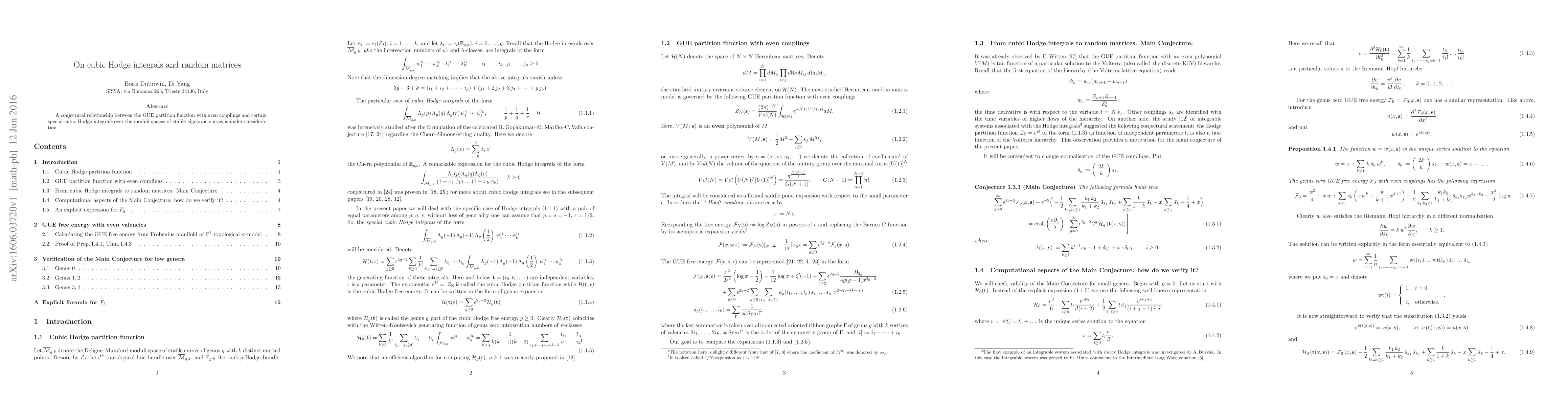 This paper explores a conjecture linking the GUE partition function with even couplings to specific cubic Hodge integrals defined over moduli spaces of stable algebraic curves, hinting at deep connections between random matrix theory and algebraic geometry.